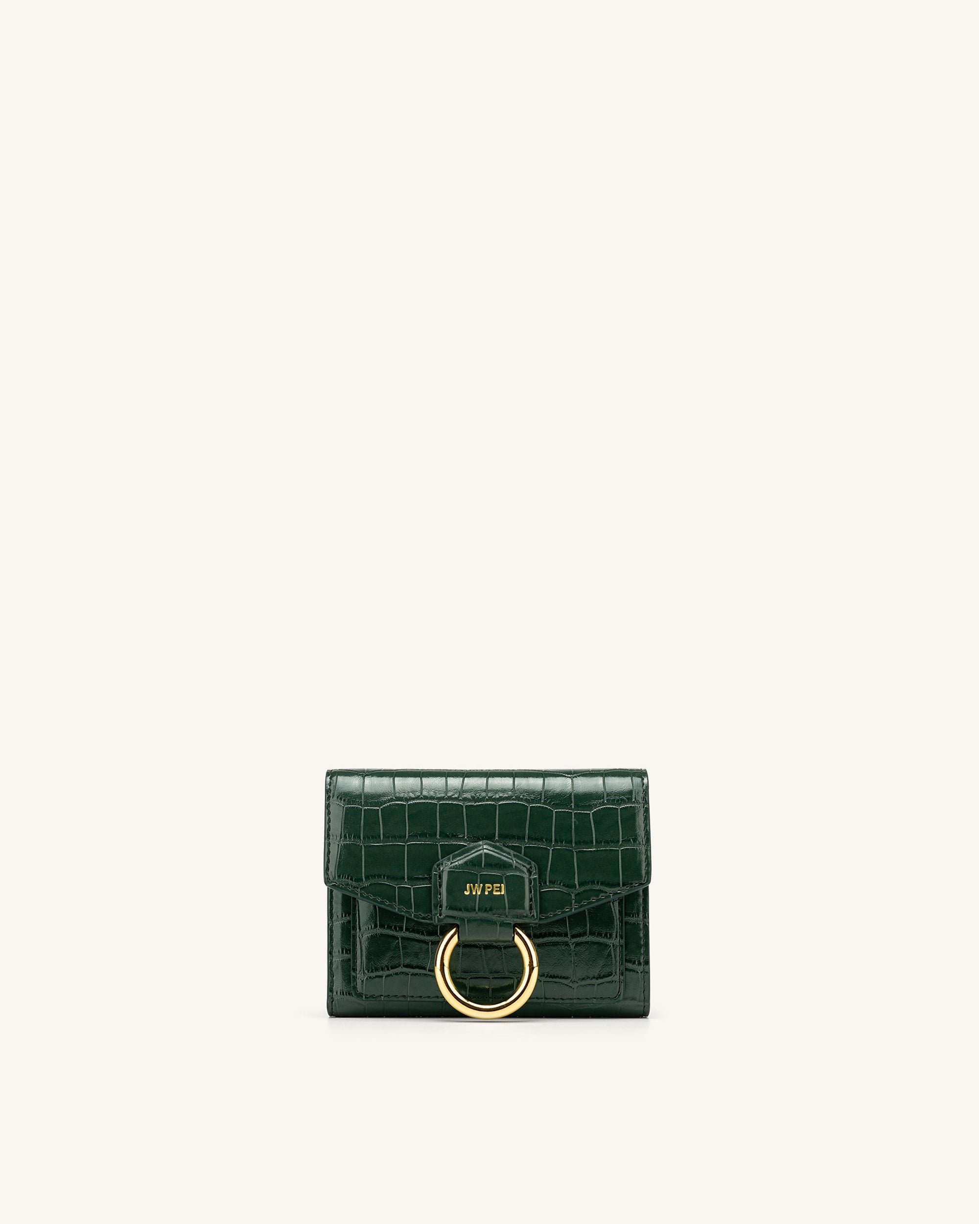 Petit Portefeuille Stella - Vert Foncé Effet Croco