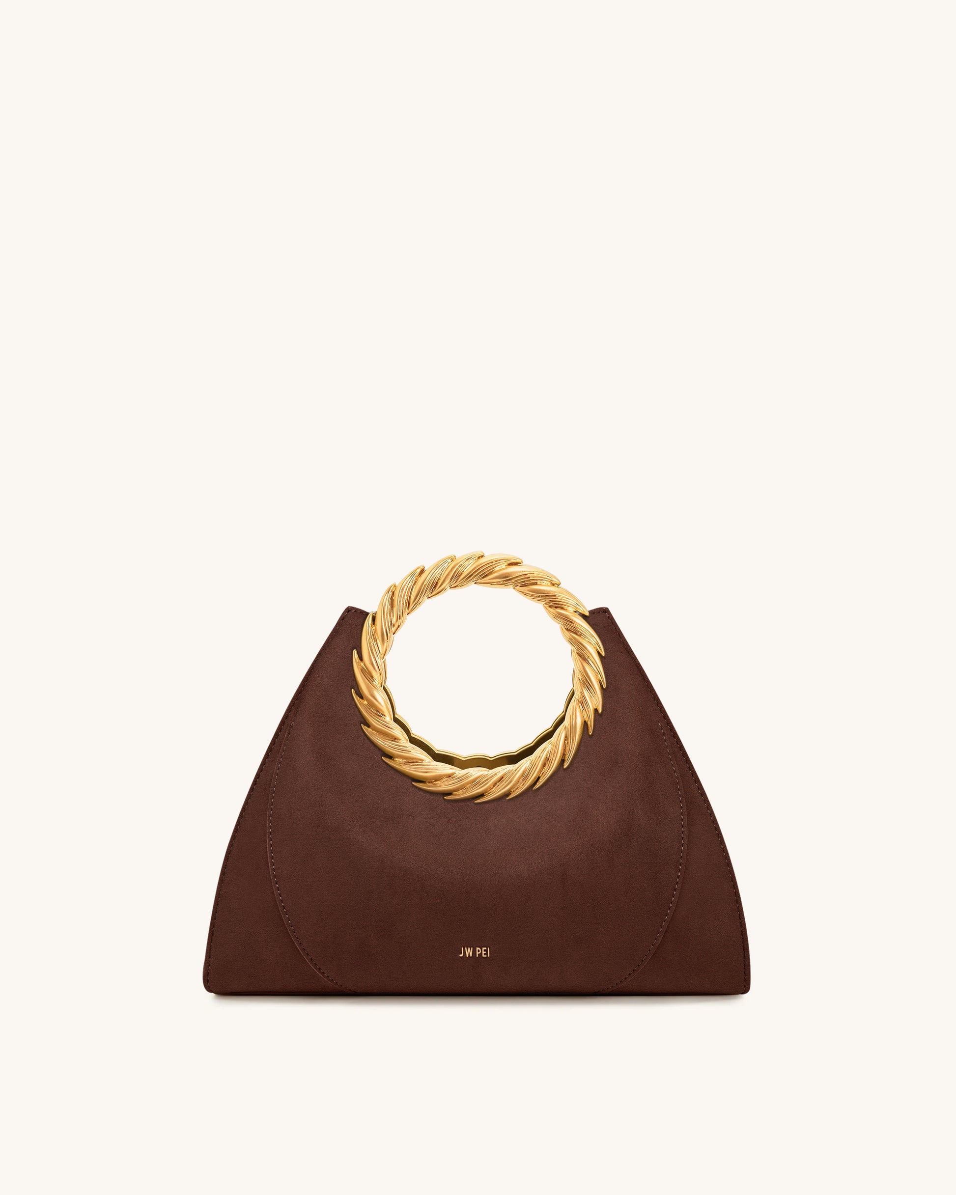 Sac sculpture en faux daim avec anse en forme de feuille Amiya - Brun mocha