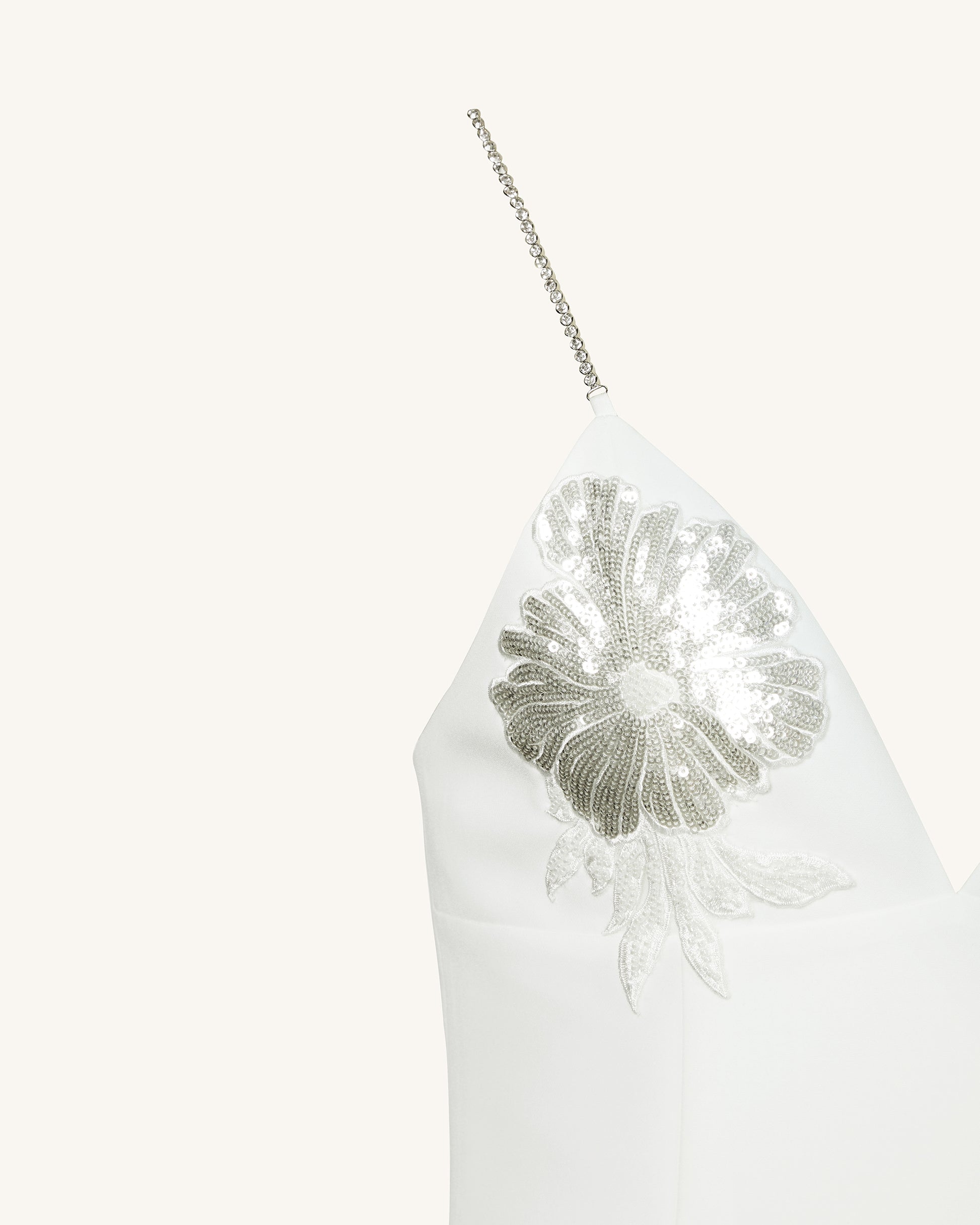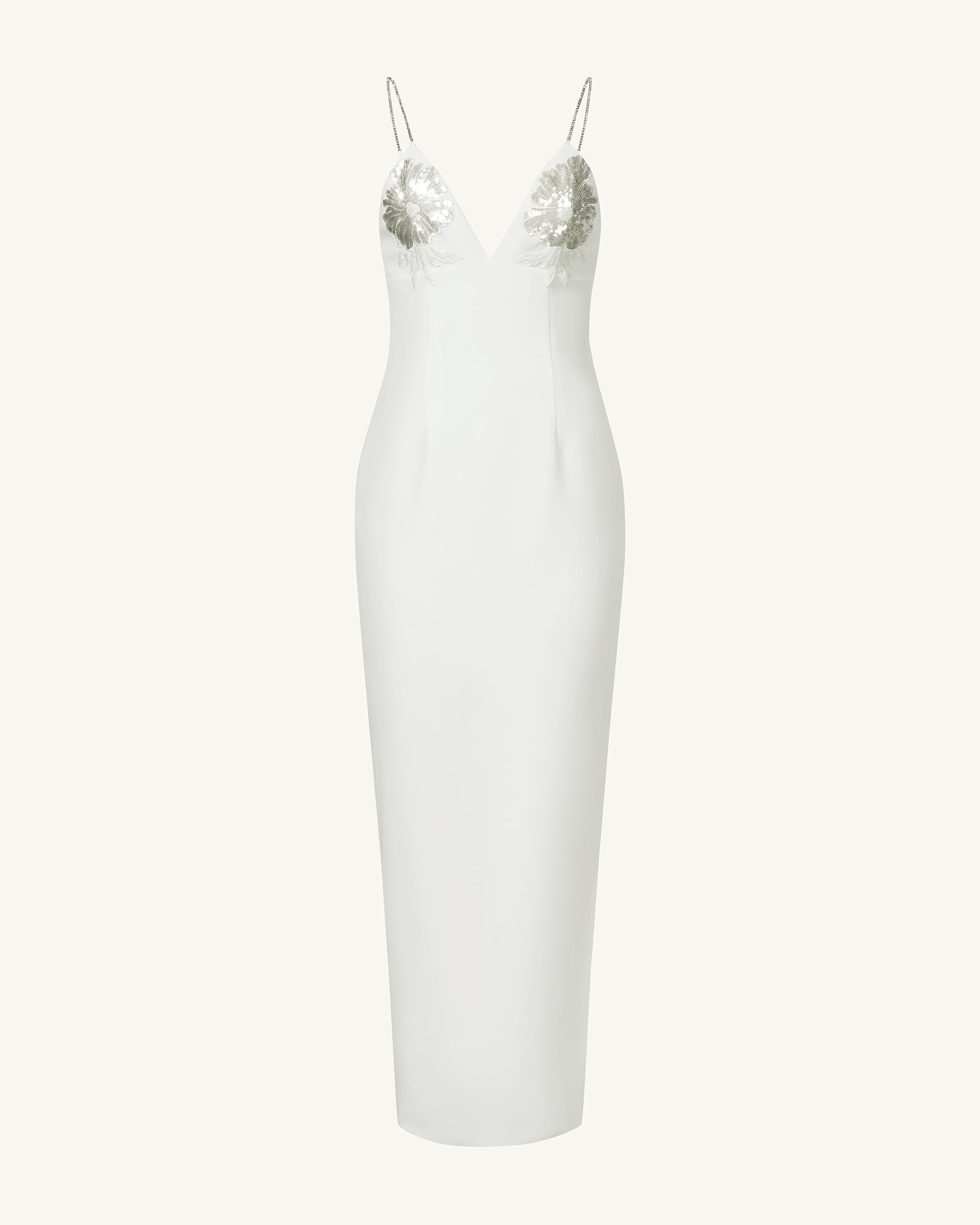 Robe longue blanche Ayliua avec décolleté en cœur orné de strass - Blanc