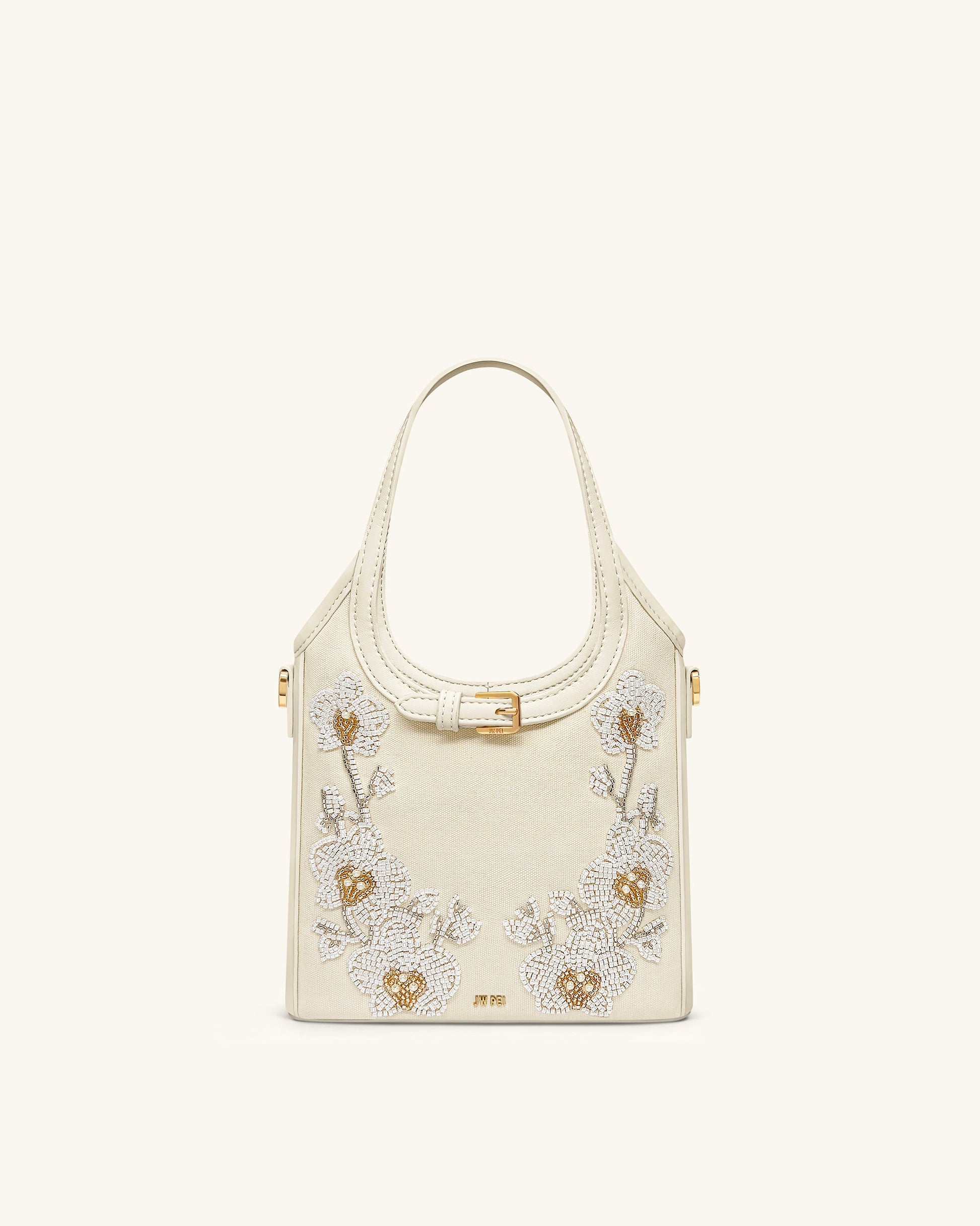 Brooke Mini sac à main orné d'une orchidée perlée avec ceinture - Ivoire