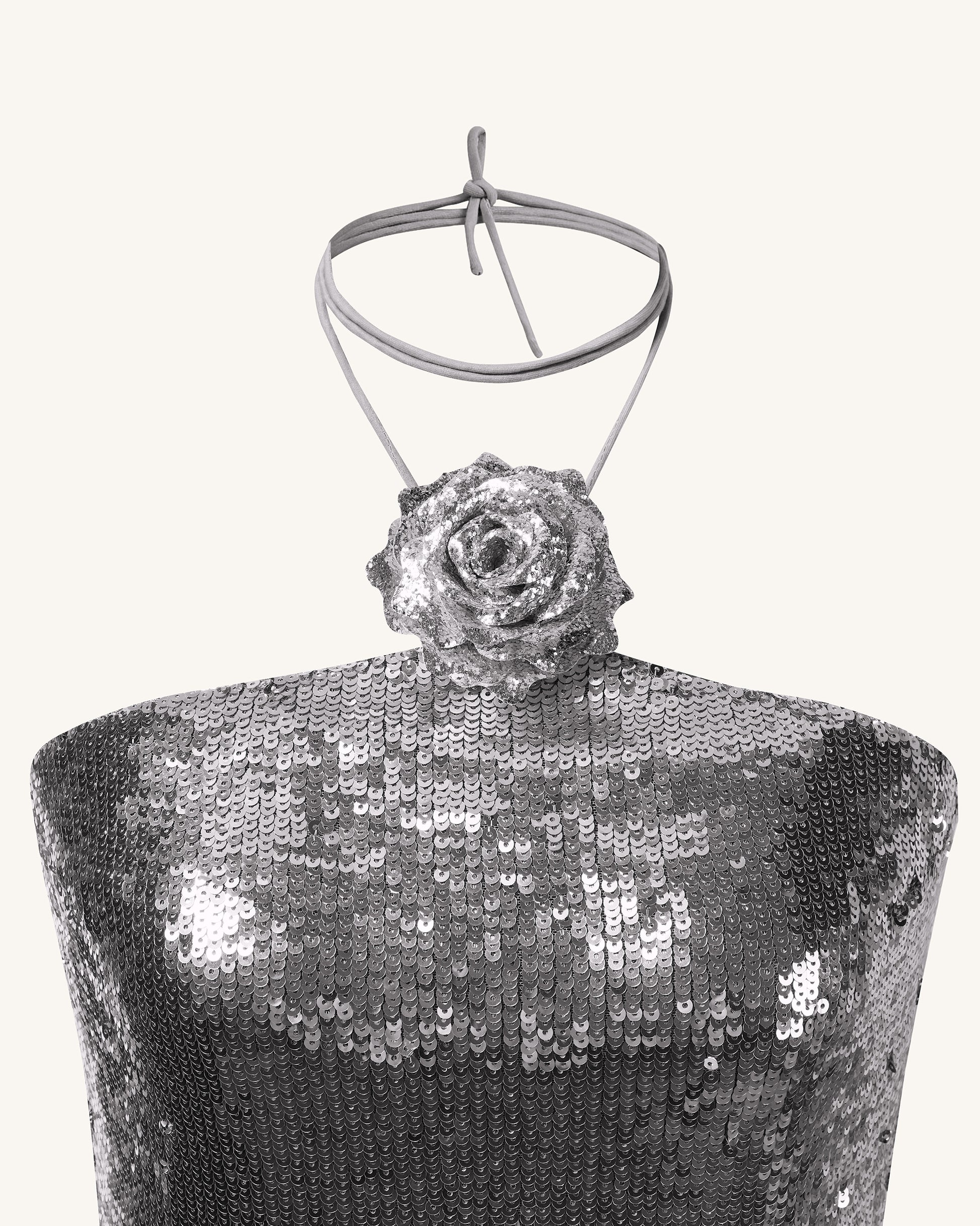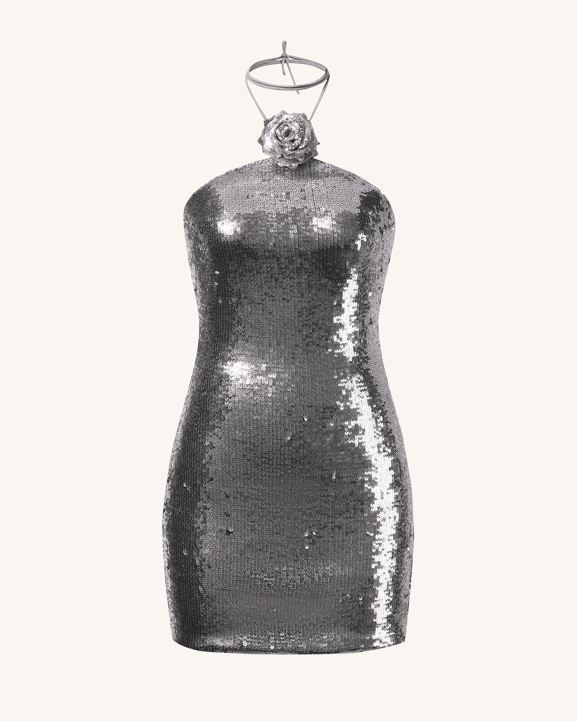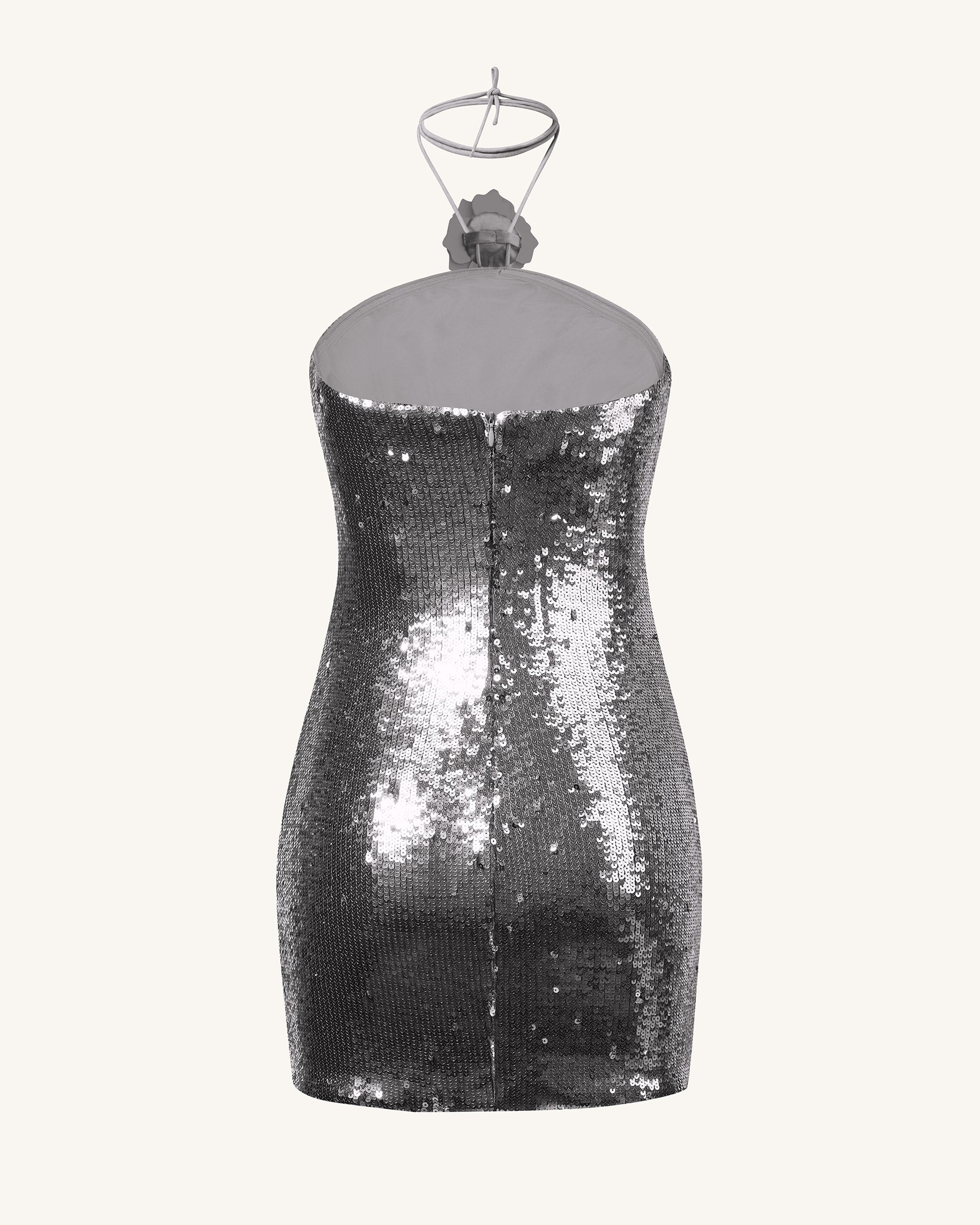 Mini-robe dos nu à sequins bordeaux argenté - Argenté