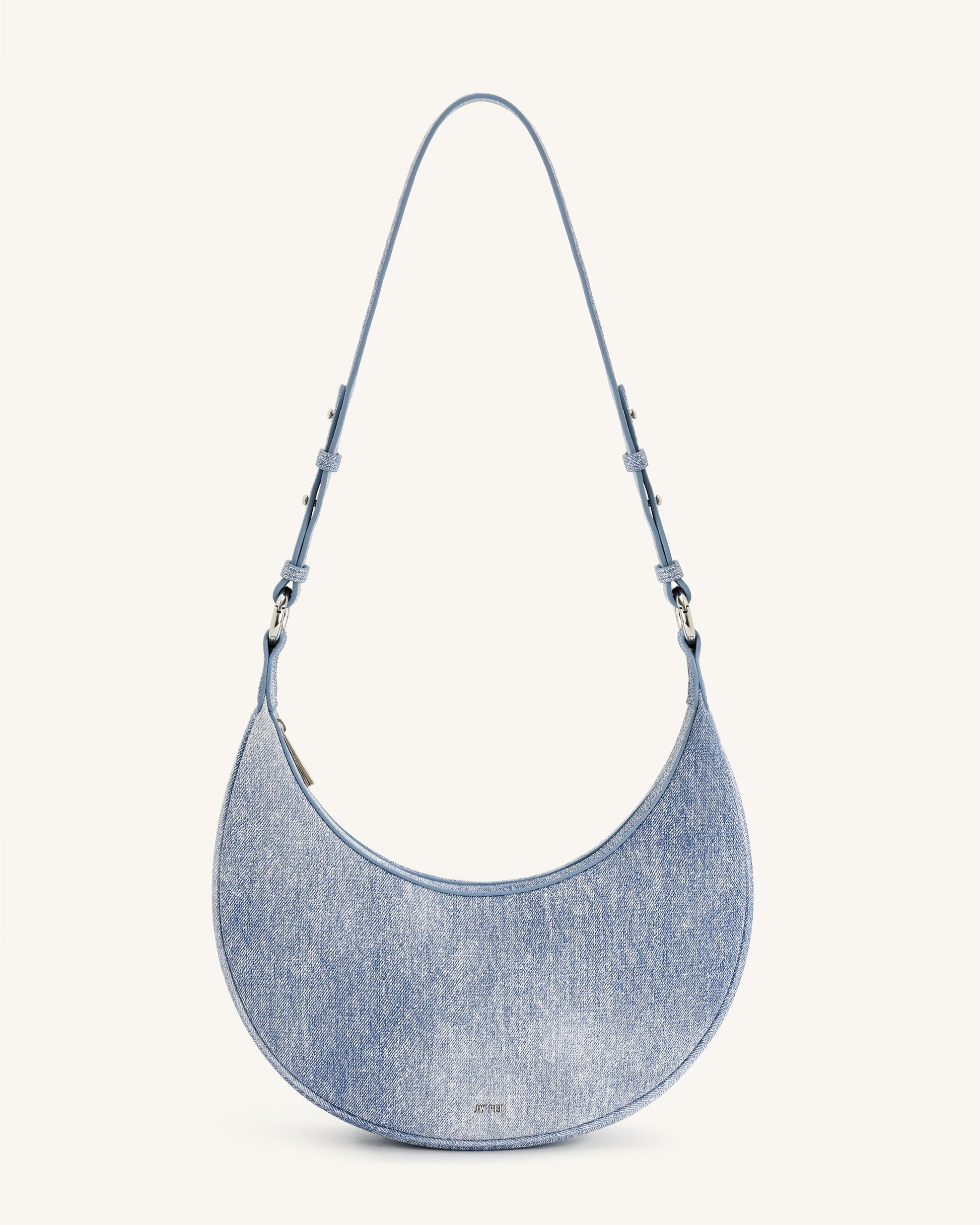 Sac bandoulière Carly en toile denim gaufrée - Bleu