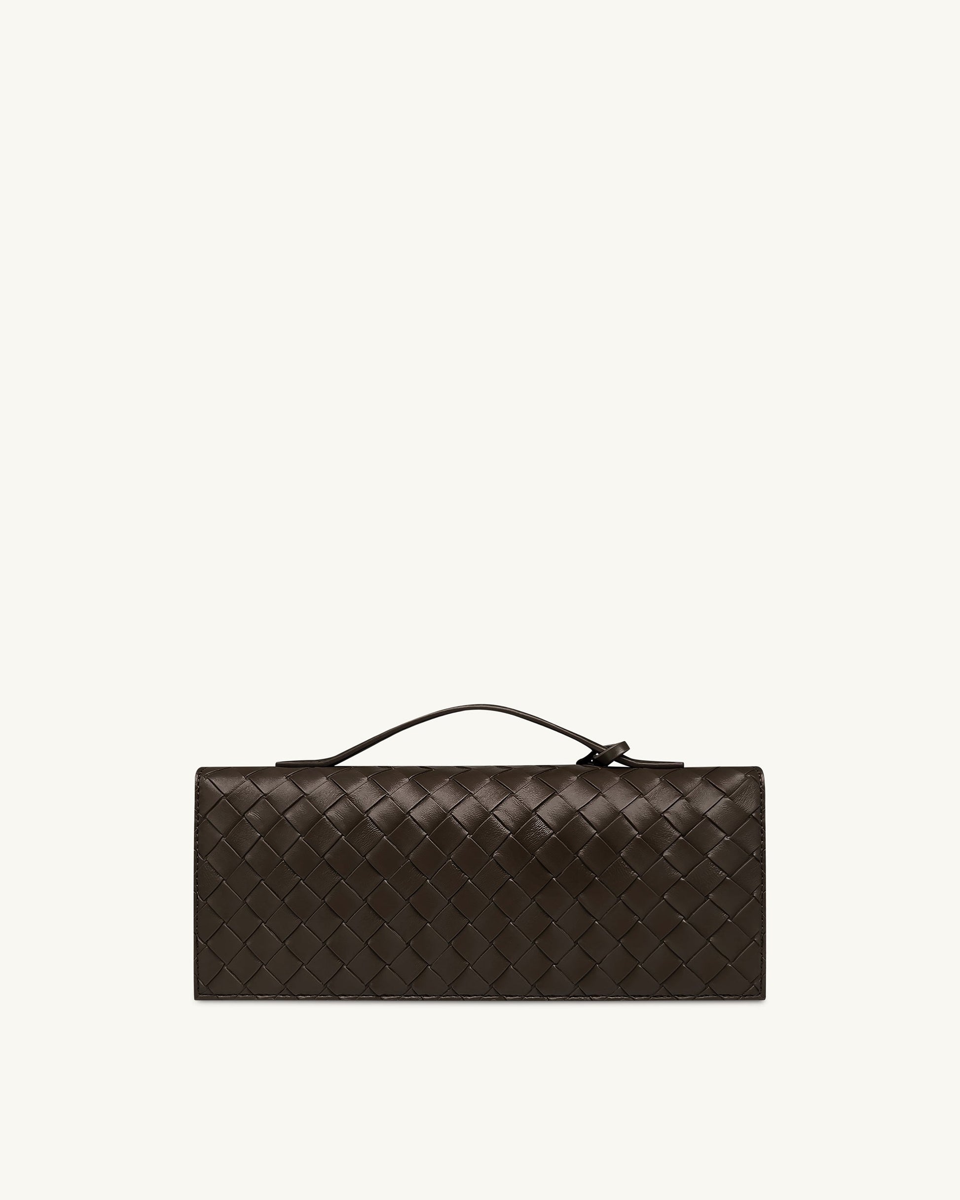 Celeste Sac à anse supérieure forme enveloppe tressé texturé - Marron foncé
