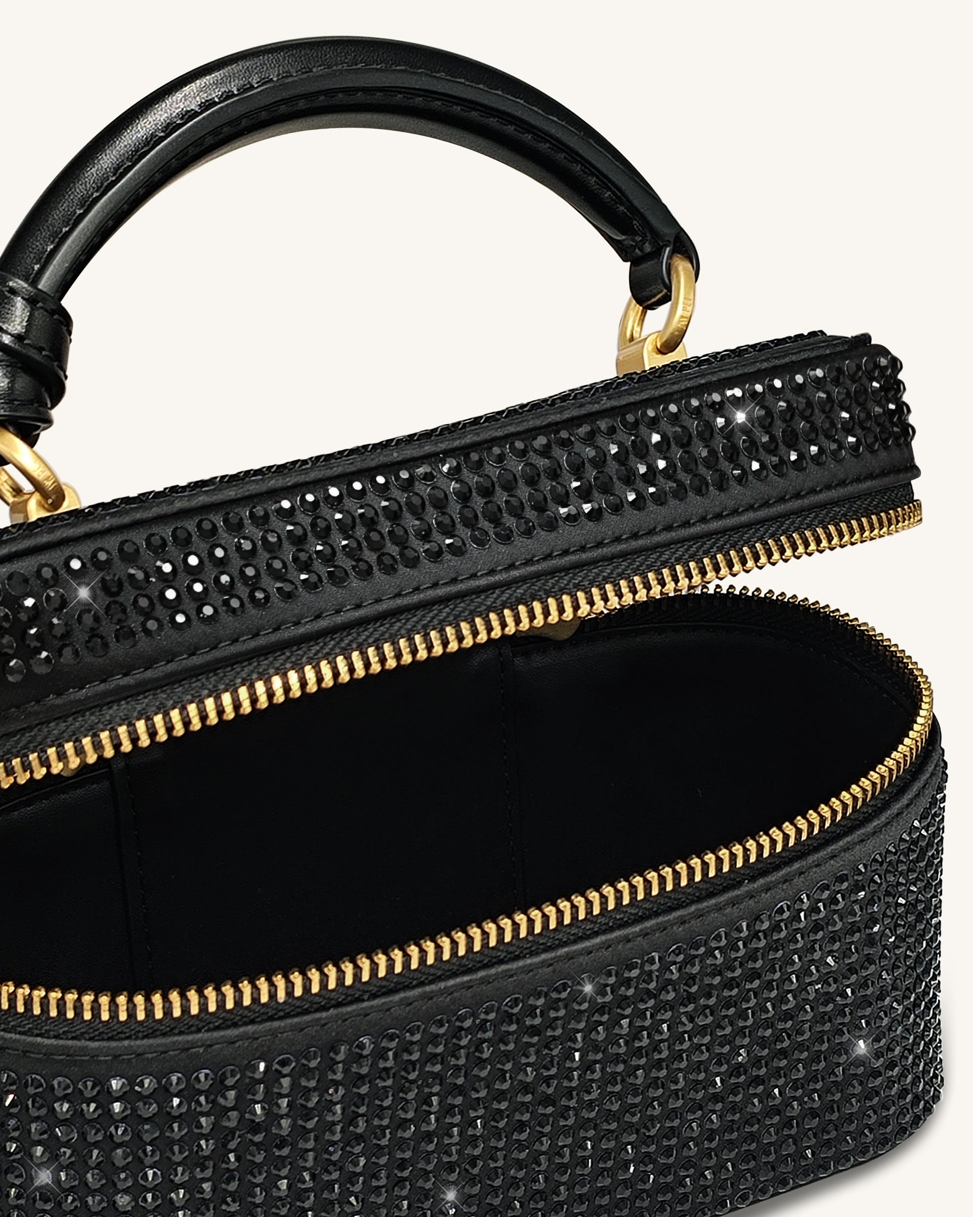 Sac à main avec anse supérieure en forme de boîte et cristal artificiel Cleo - Noir