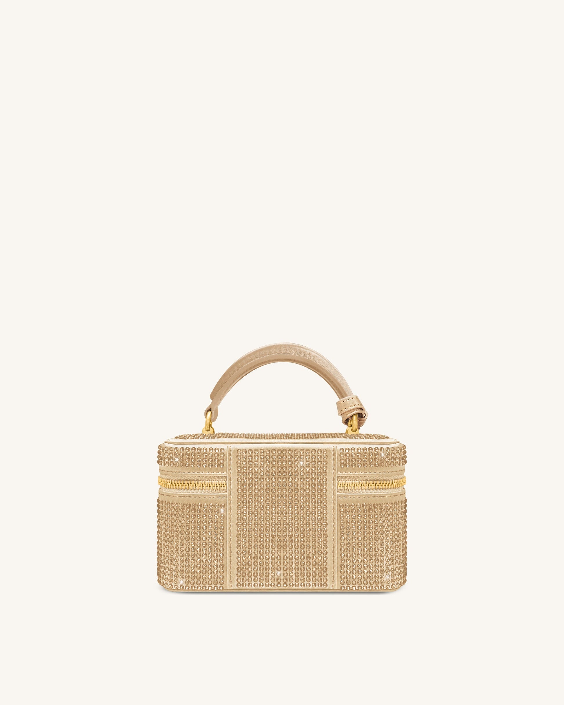 Sac à main avec anse supérieure en forme de boîte et cristal artificiel Cleo - Champagne