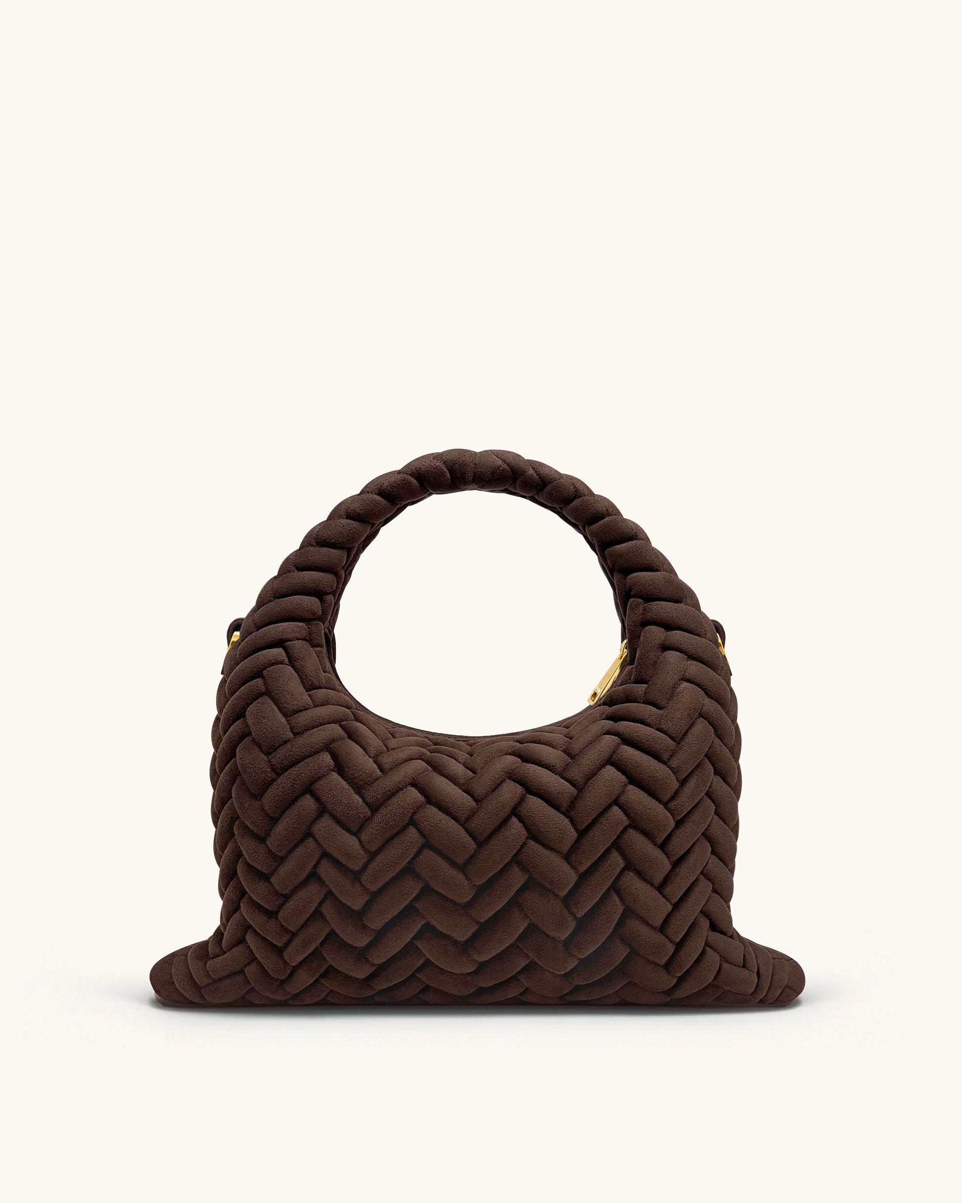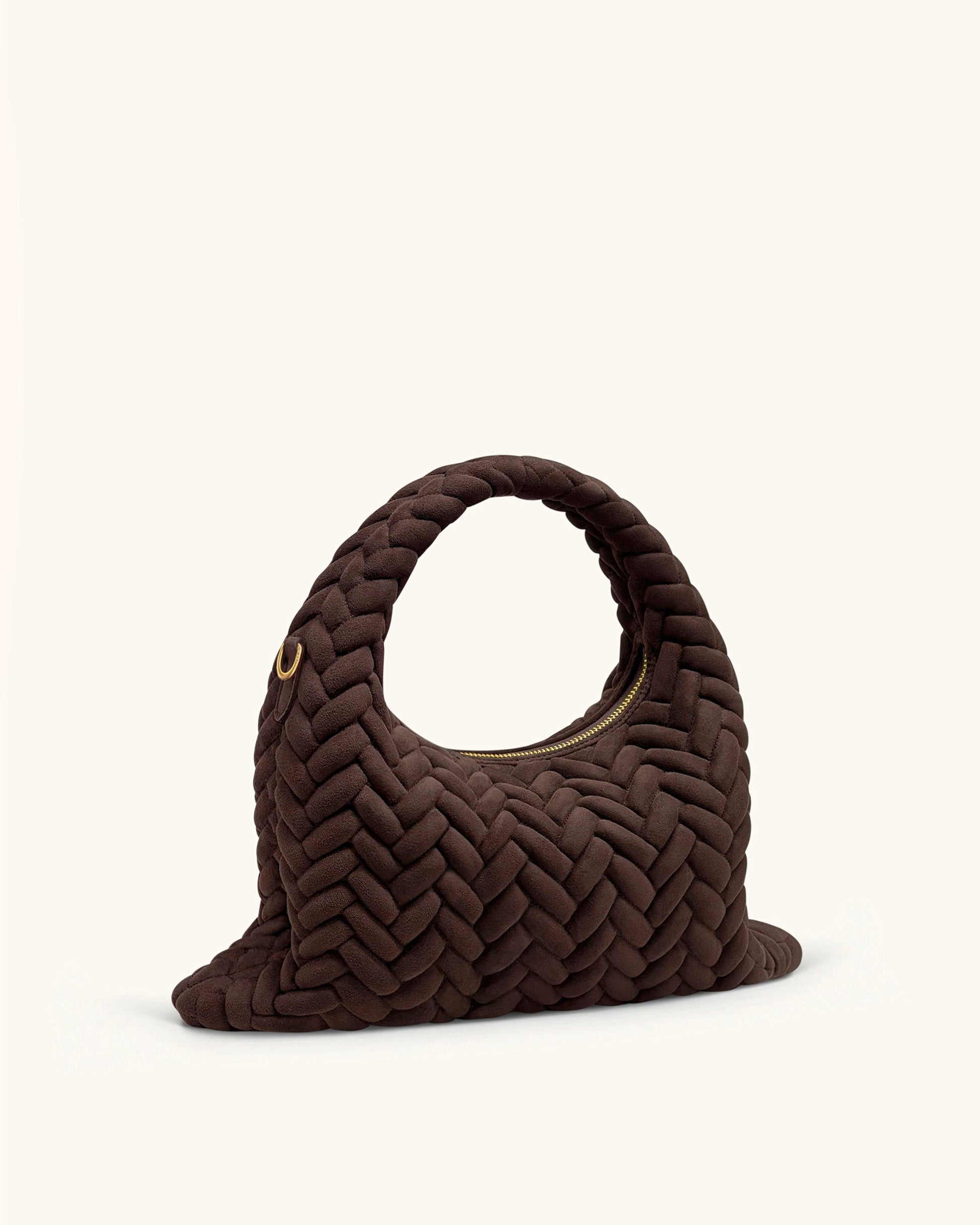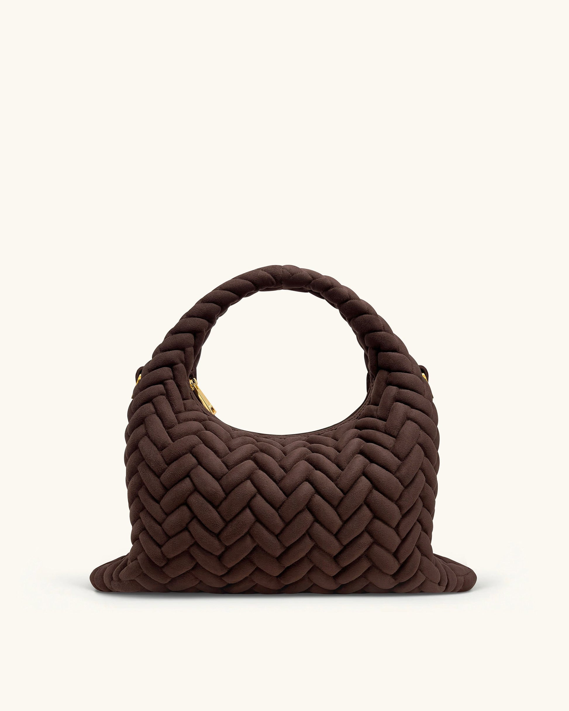 Sac à poignée matelassé en faux daim Cora - Marron foncé