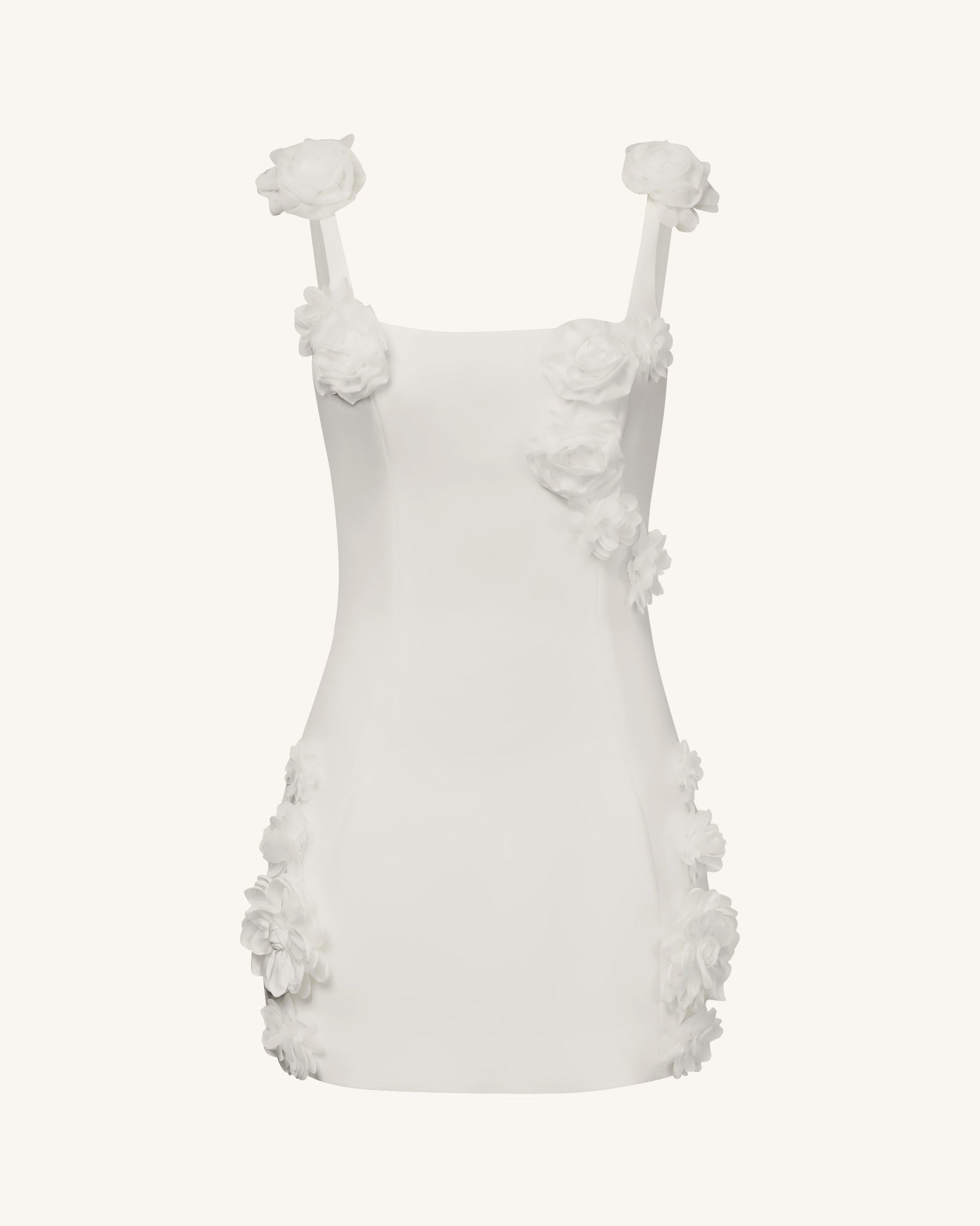 Robe mini Elaina à appliques de roses blanches - Blanc