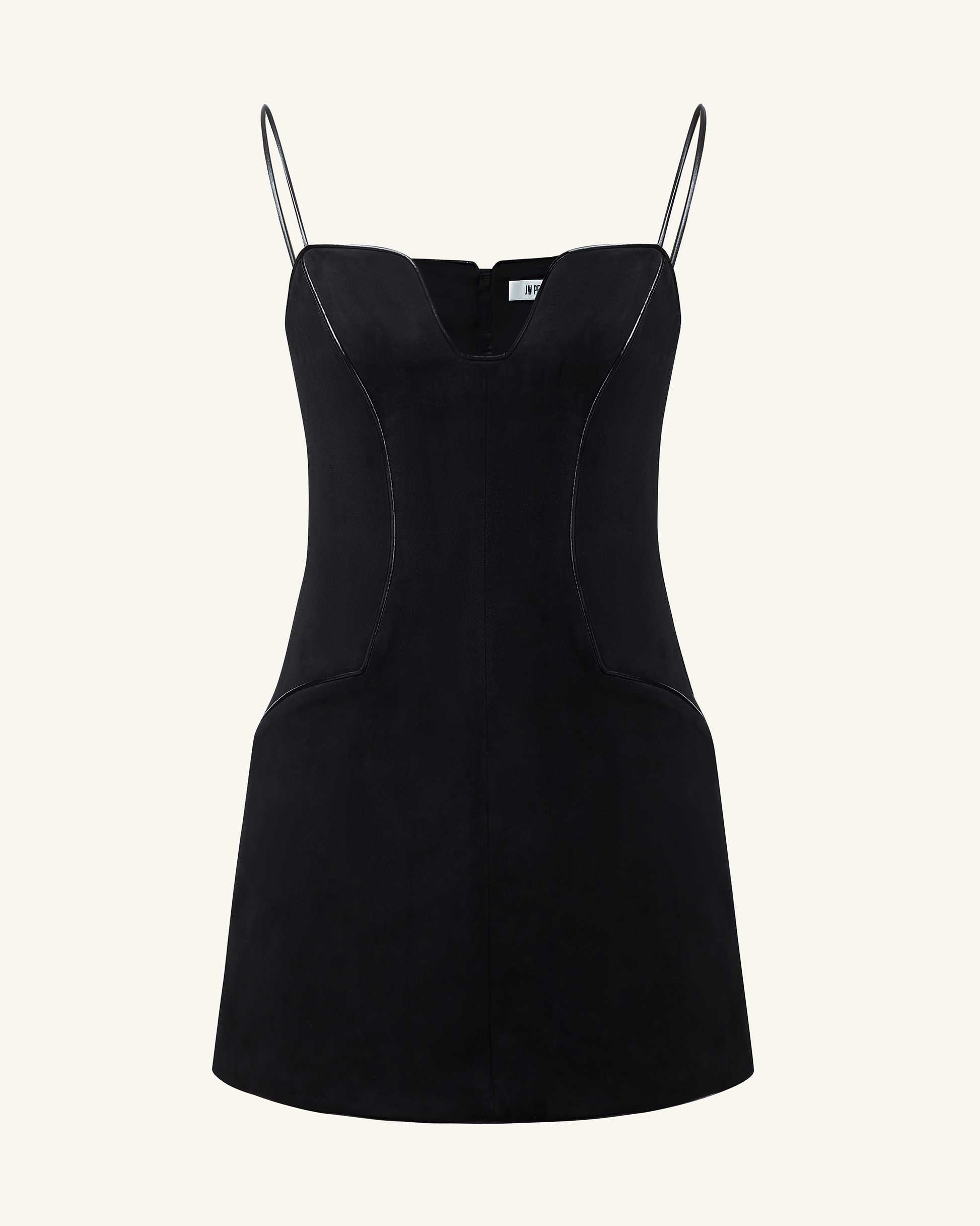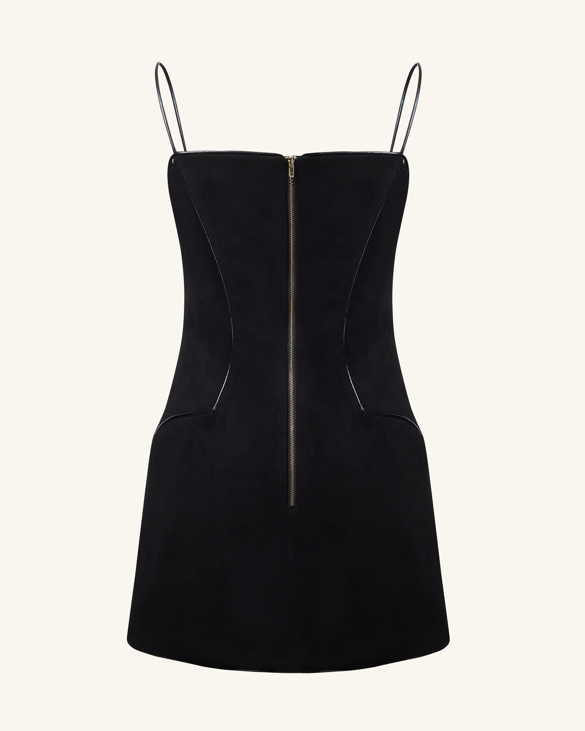 Robe en Daim avec Bretelles Spaghetti Eva - Noir