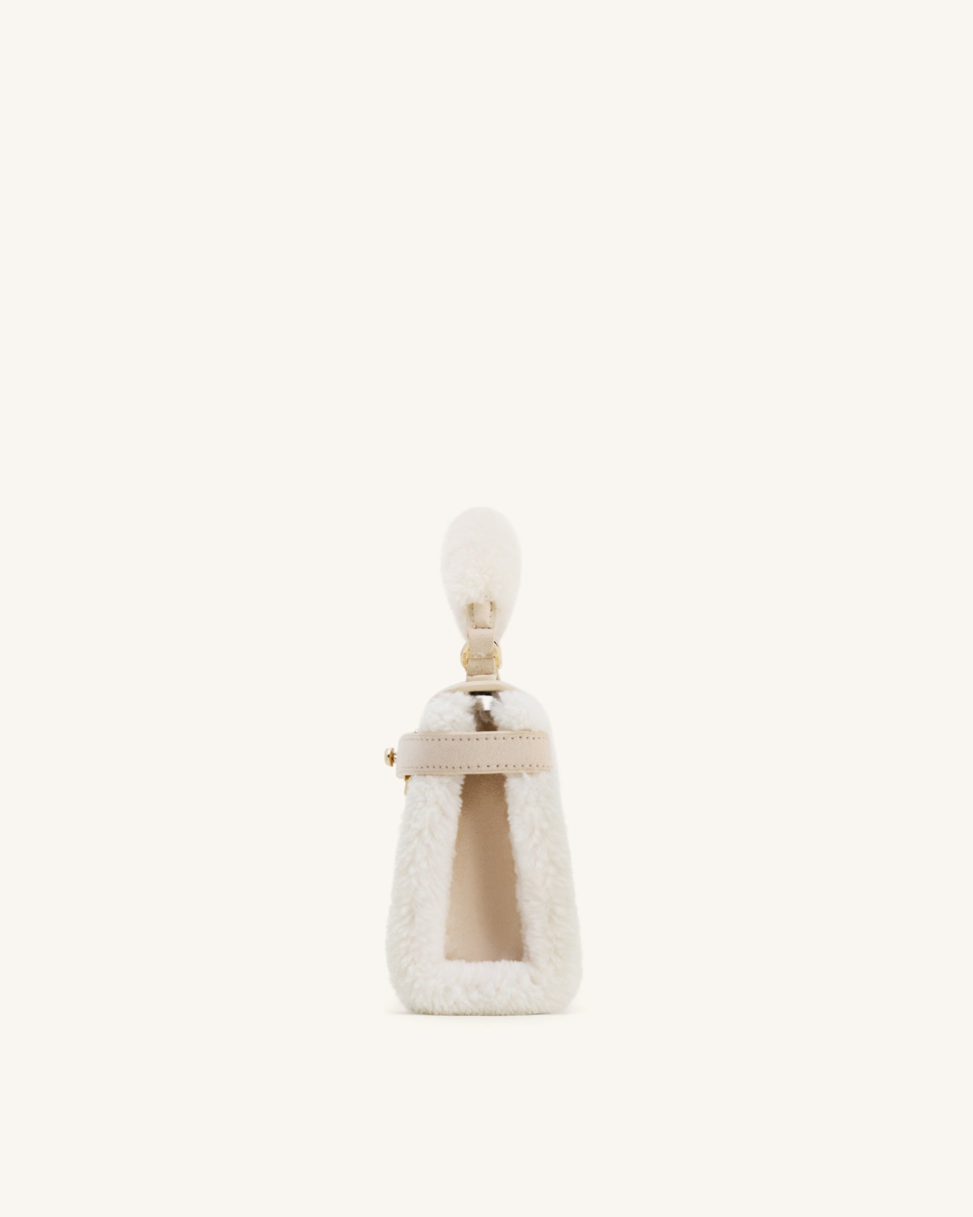 Mini sac chic et structuré en matière effet suède taupe. Détails en fausse fourrure douce sur la poignée supérieure et les côtés. Accessoires dorés pour une finition charmante. Polyvalent pour un port à la main ou en bandoulière.