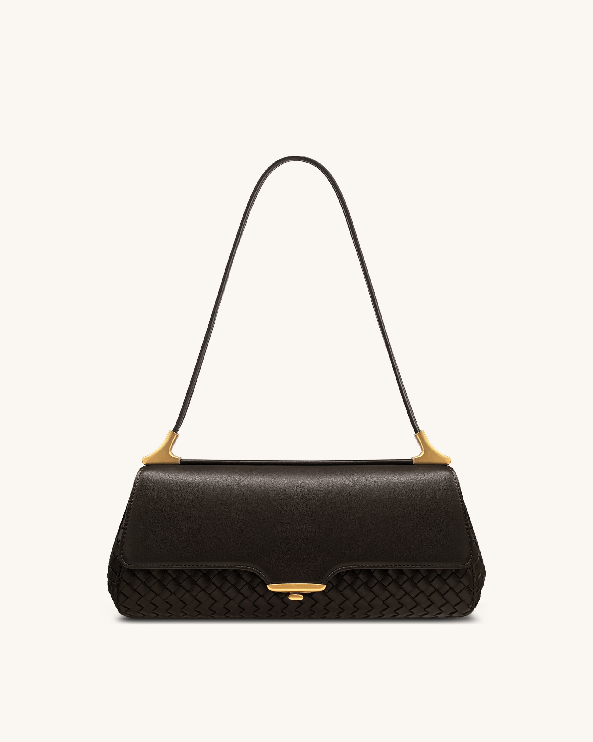 Raffiné et structuré, ce sac à main présente une texture tissée. Agrémenté de quincaillerie dorée pour une touche d'élégance. Idéal pour les essentiels du quotidien.