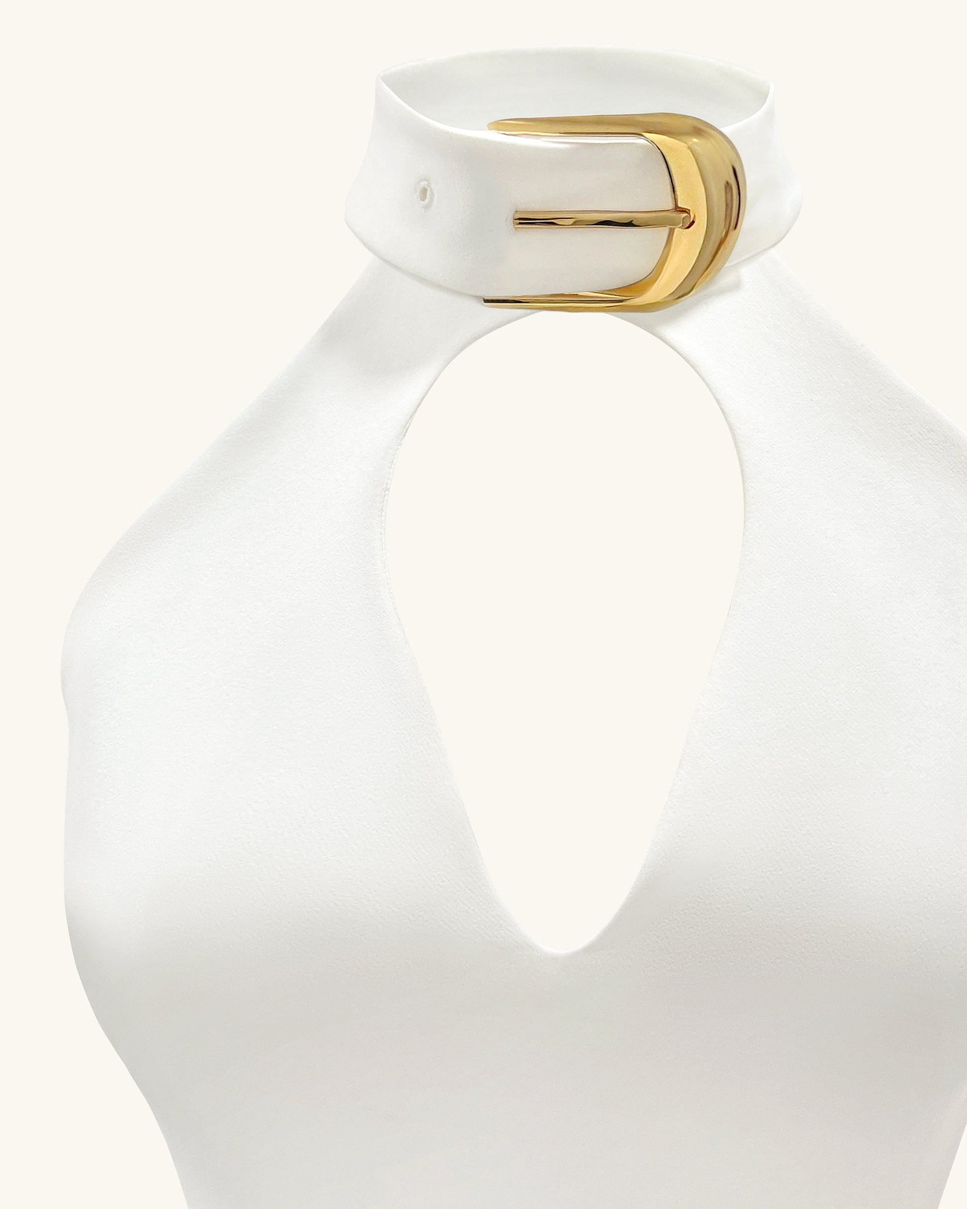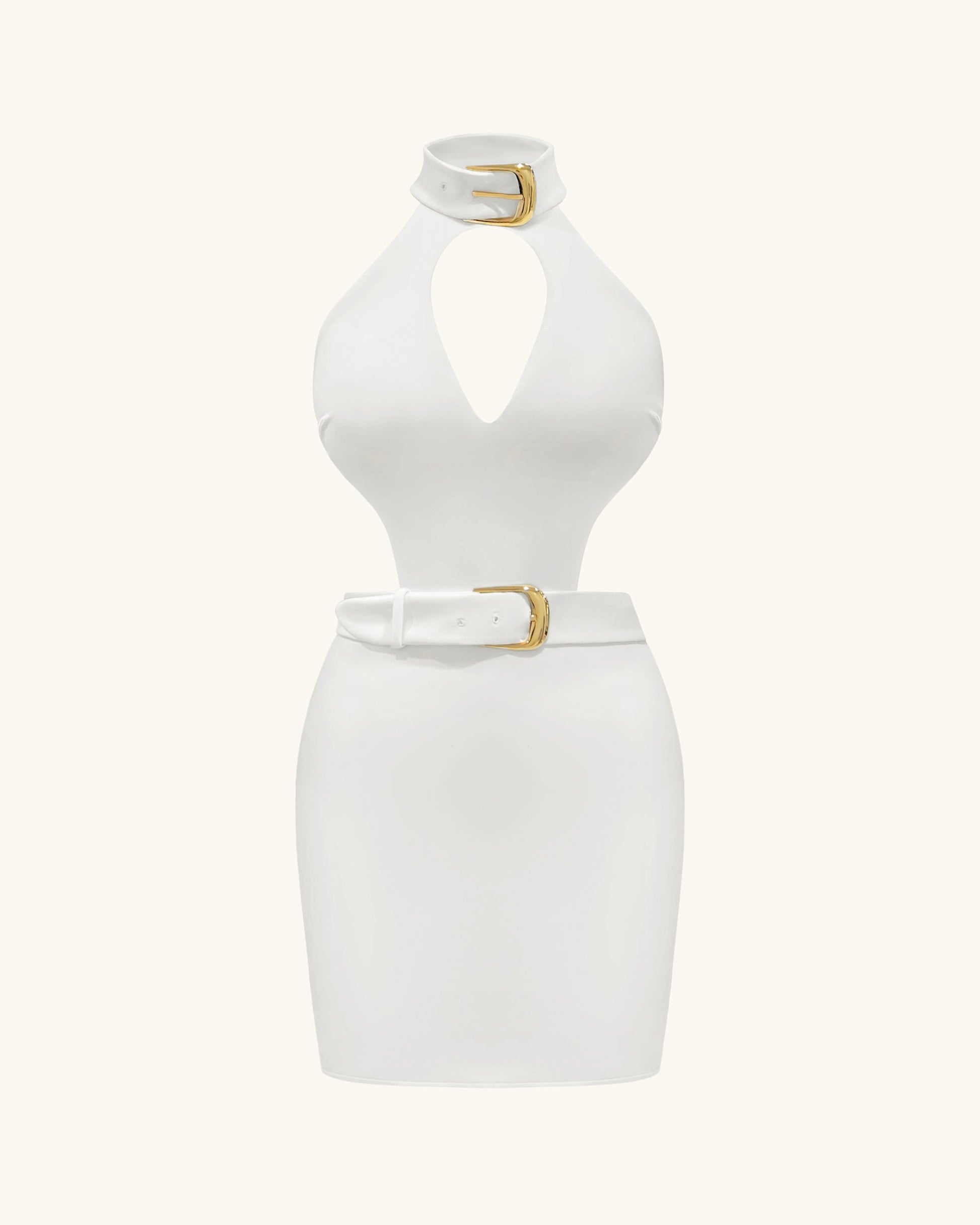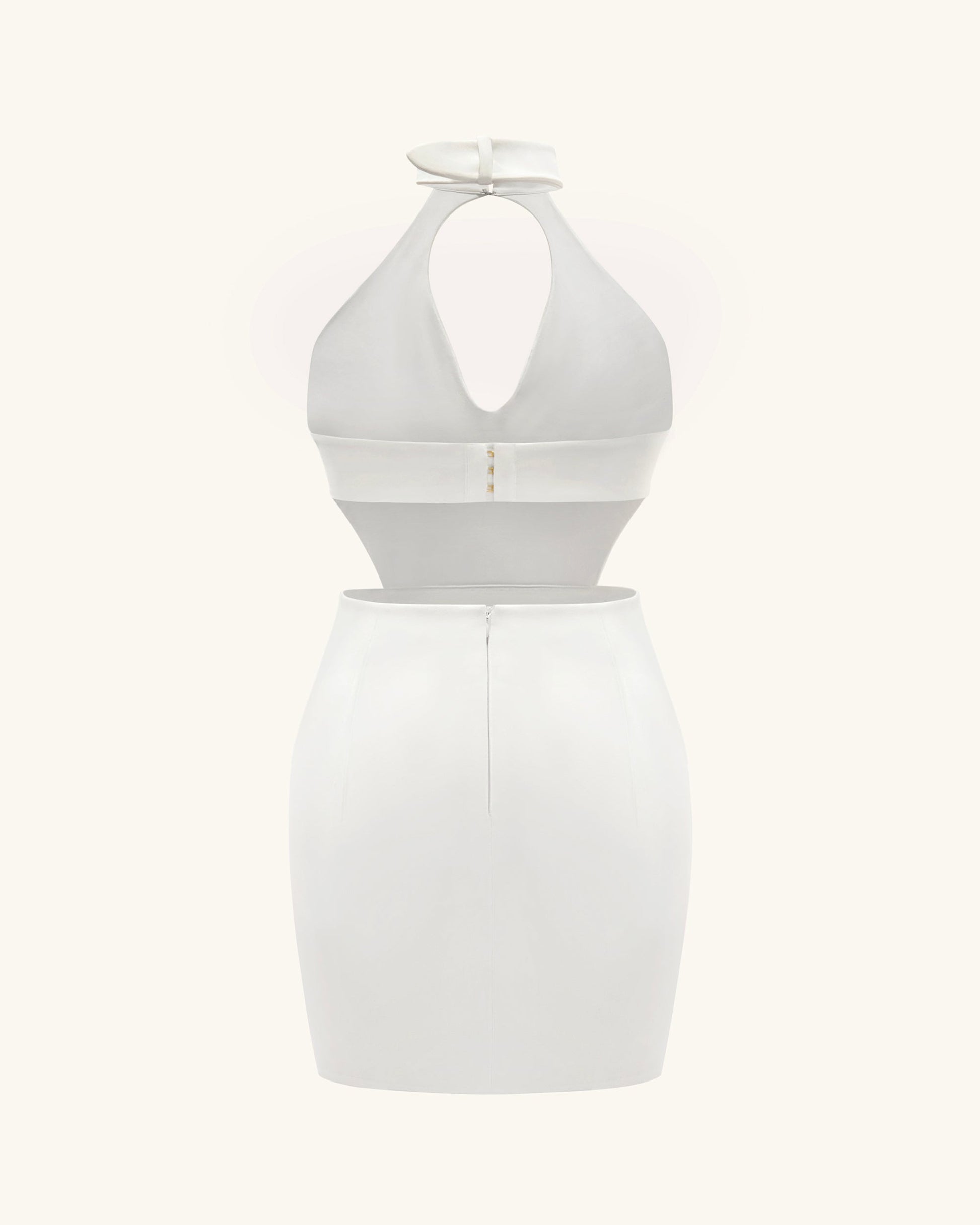 Robe Mini Gabriella à Découpes, Ceinturée, à Col Halter – Ivoire