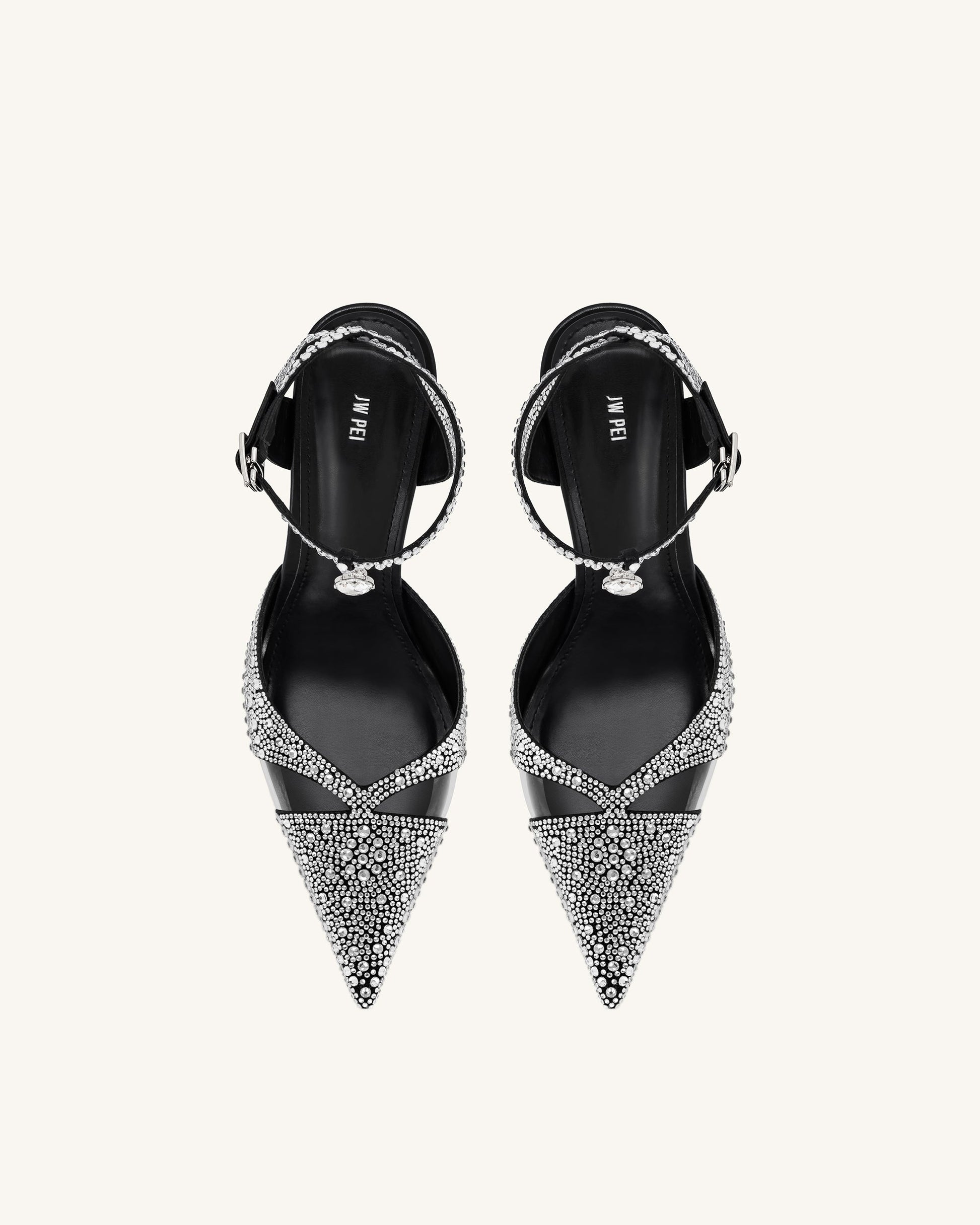 Escarpins à talons hauts en cristal artificiel Haidi - Noir