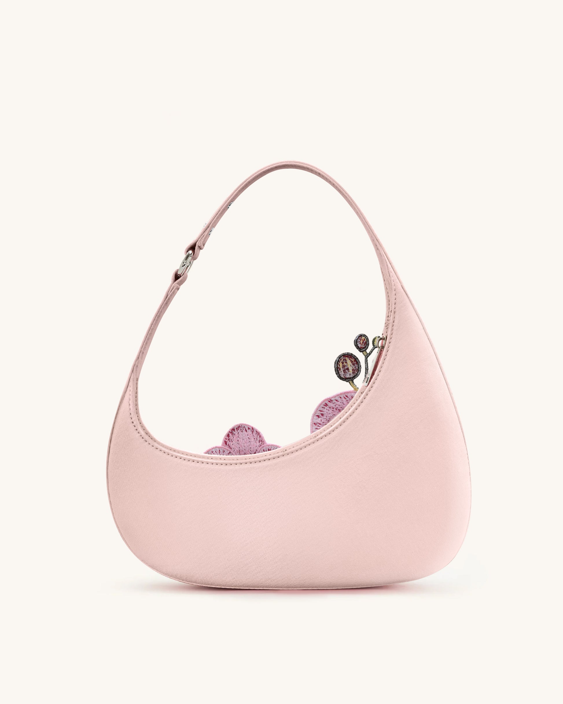 Sac porté épaule Harlee brodé d’orchidées – Rose