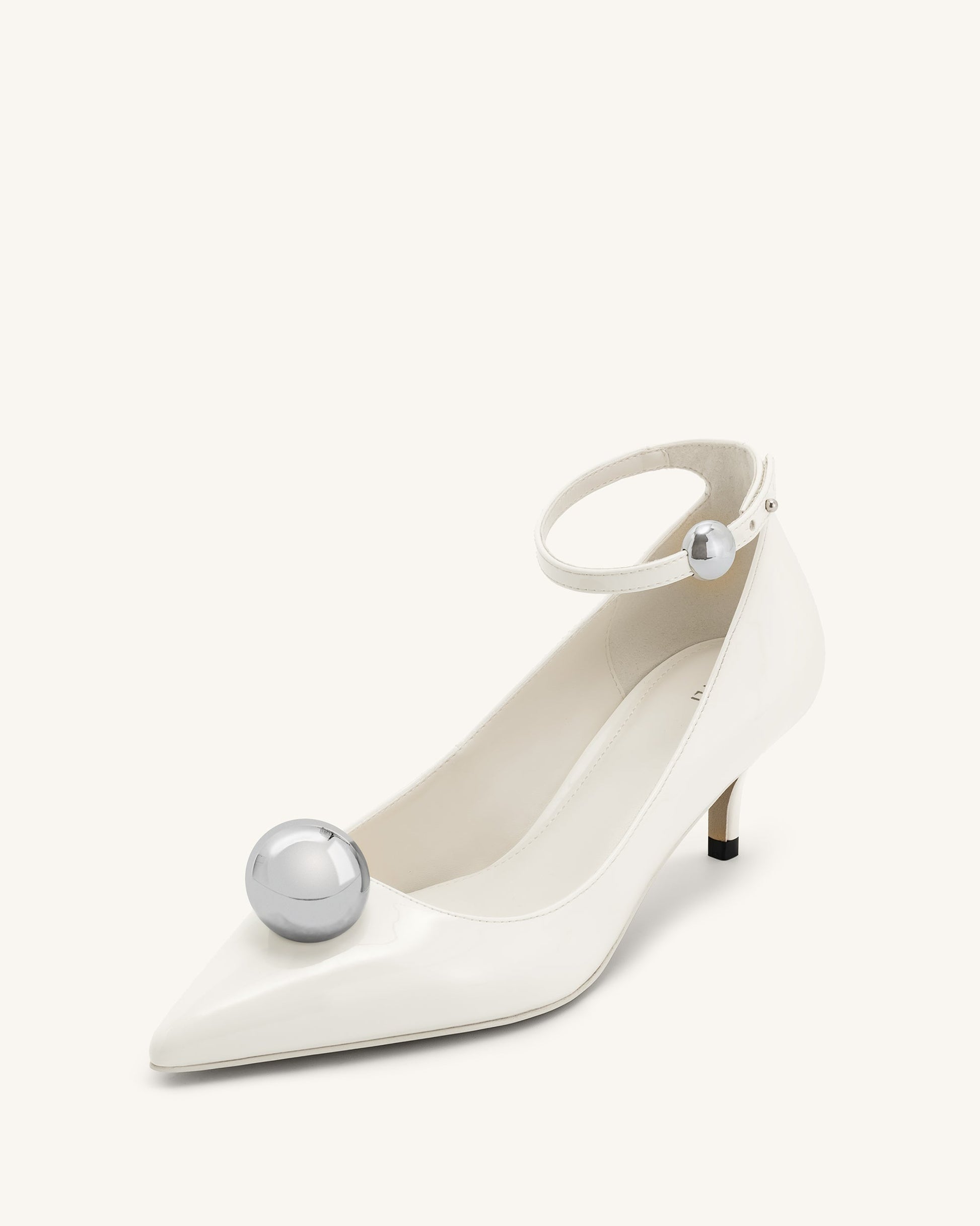 Escarpins à talons kitten avec boucle bijou - Blanc