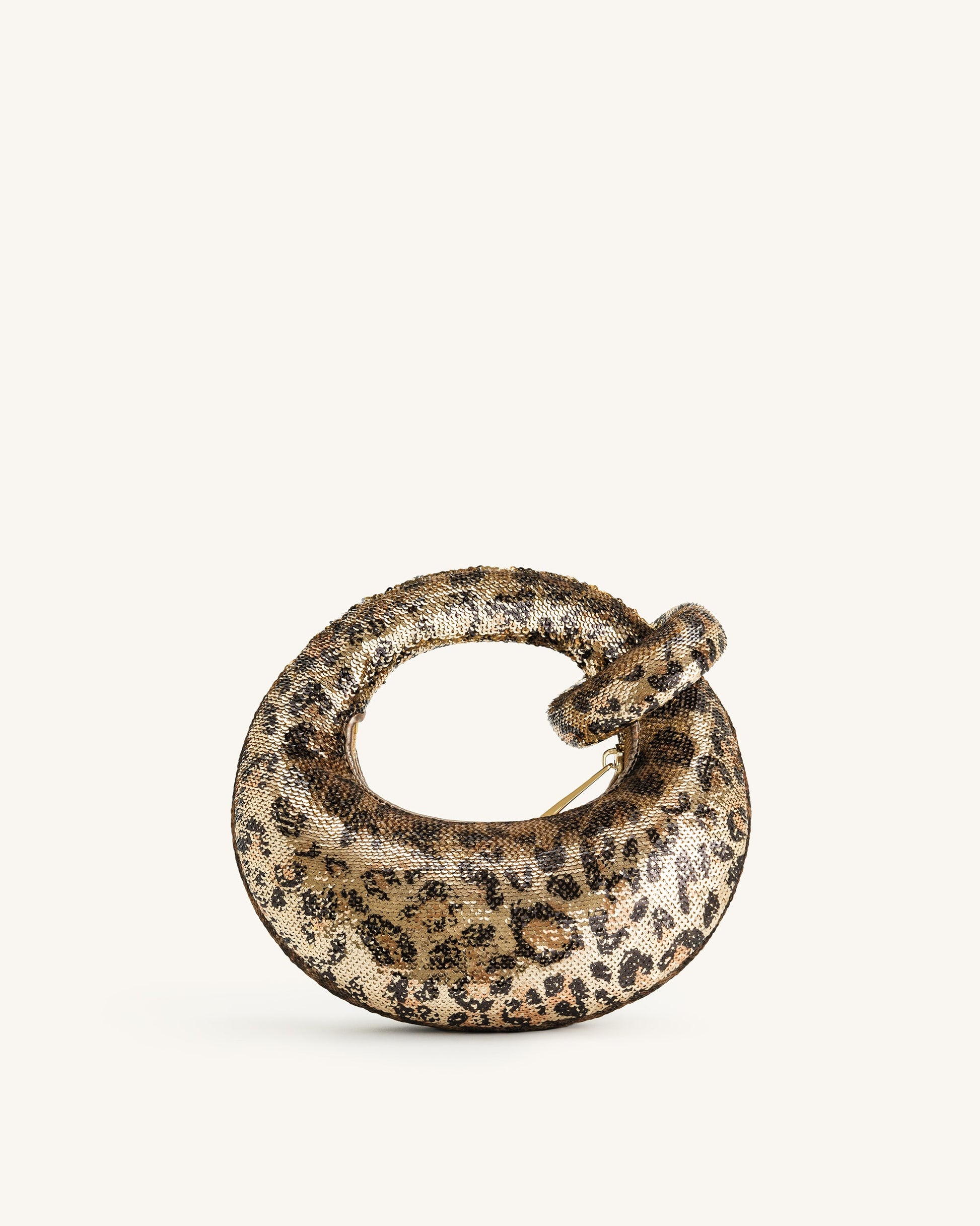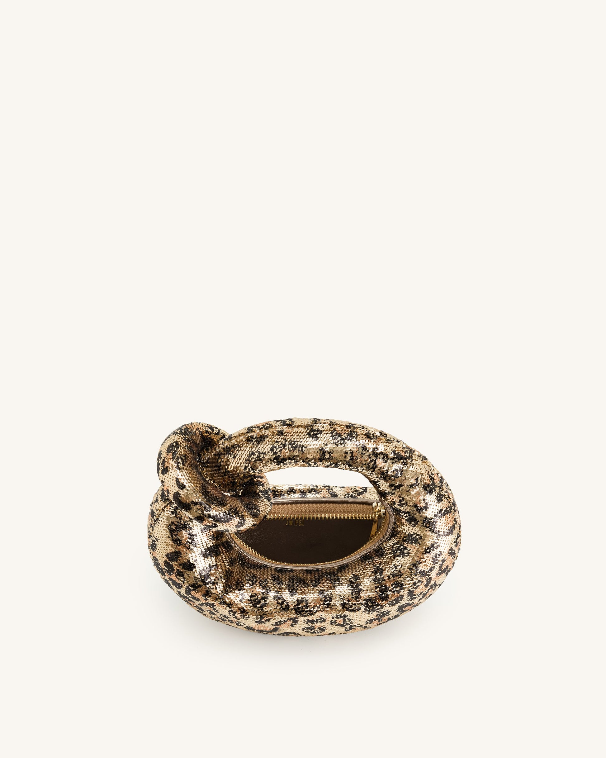 Sac à bandoulière mini à poignée supérieure en sequins métalliques Abacus - Imprimé léopard