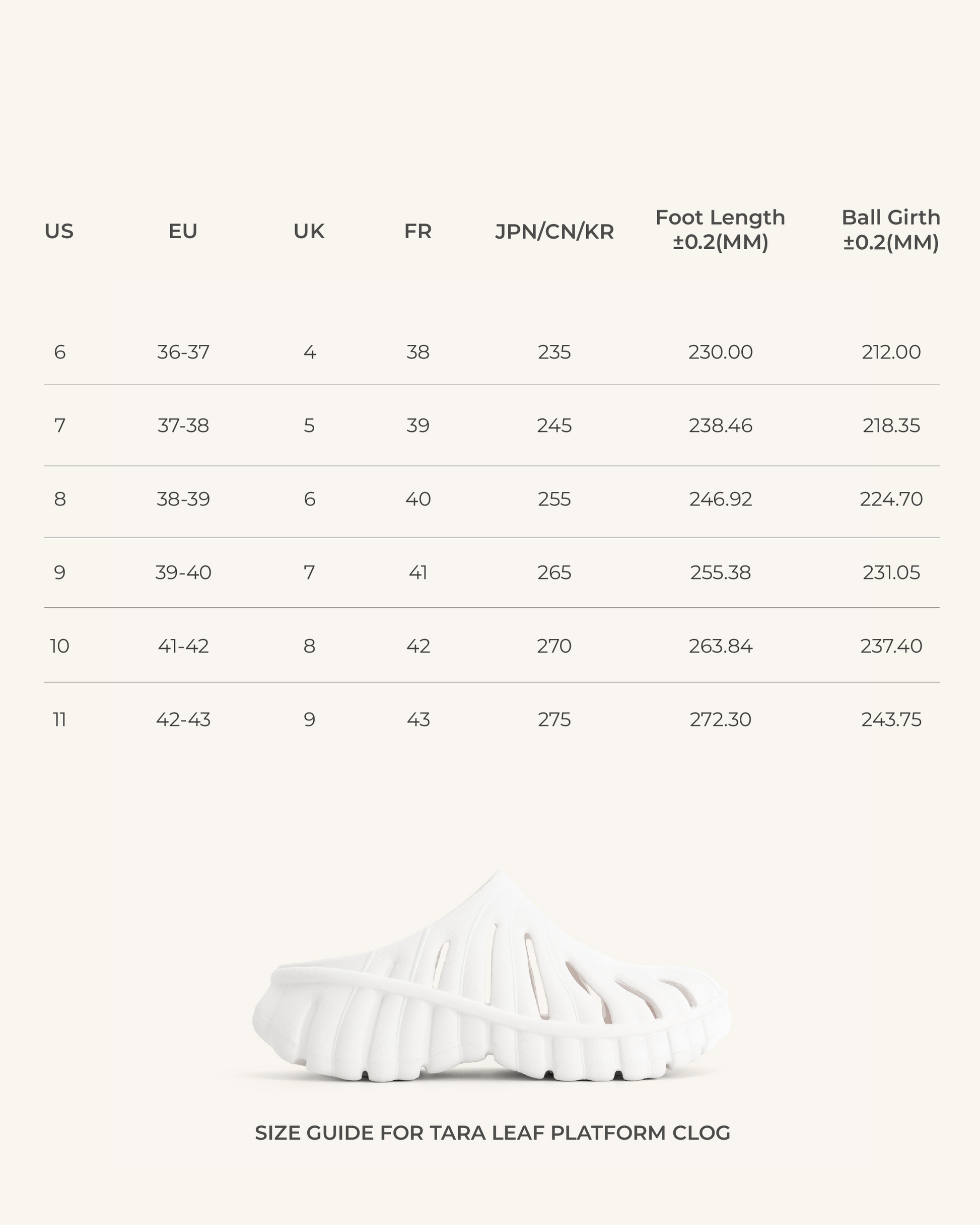 | US | EU | UK | JPN/CN/KR | Longueur du pied±0.2 (CM) |