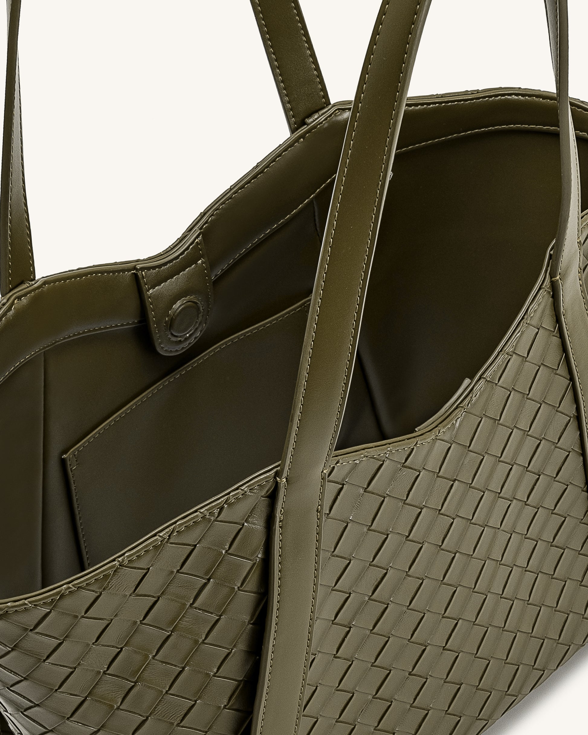 Grand sac cabas à texture tressée Kiana – Olive foncé