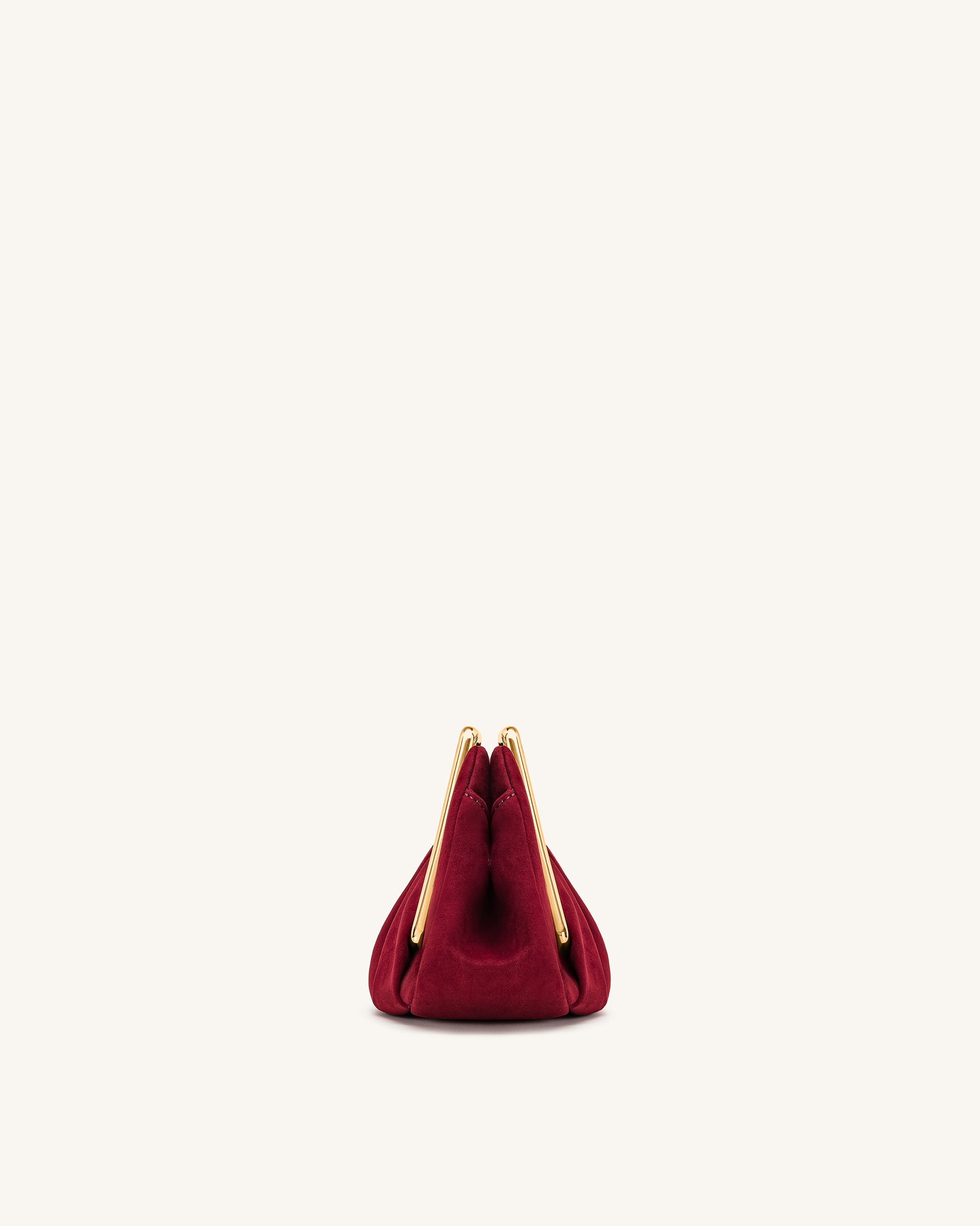 Pochette rigide Lila en faux daim avec cadre métallique - Rouge