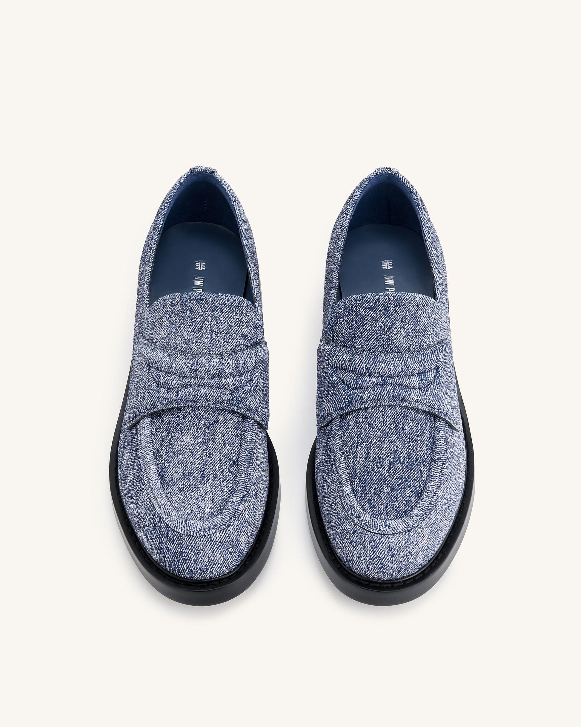 Mocassin Micah en Denim Gaufré à Semelle Épaisse - Bleu