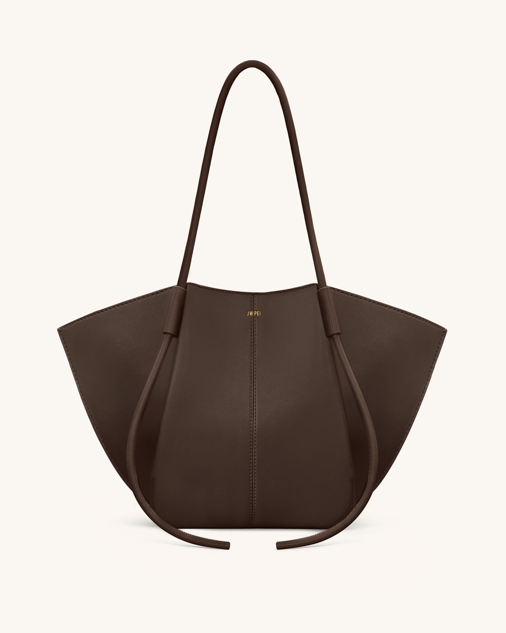 Silhouette ailée unique, cuir vegan lisse, élégant et moderne. Spacieux et polyvalent pour un usage quotidien.