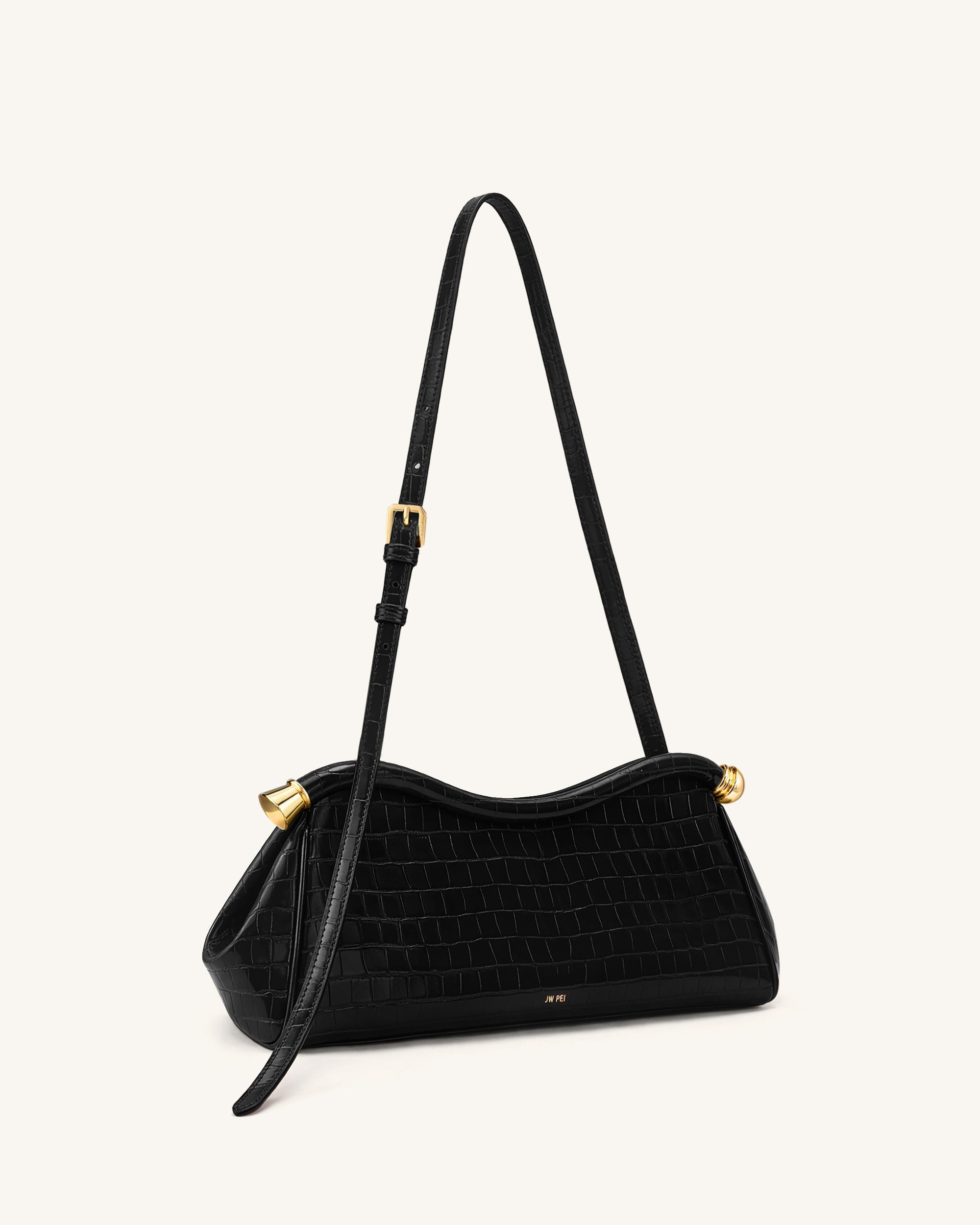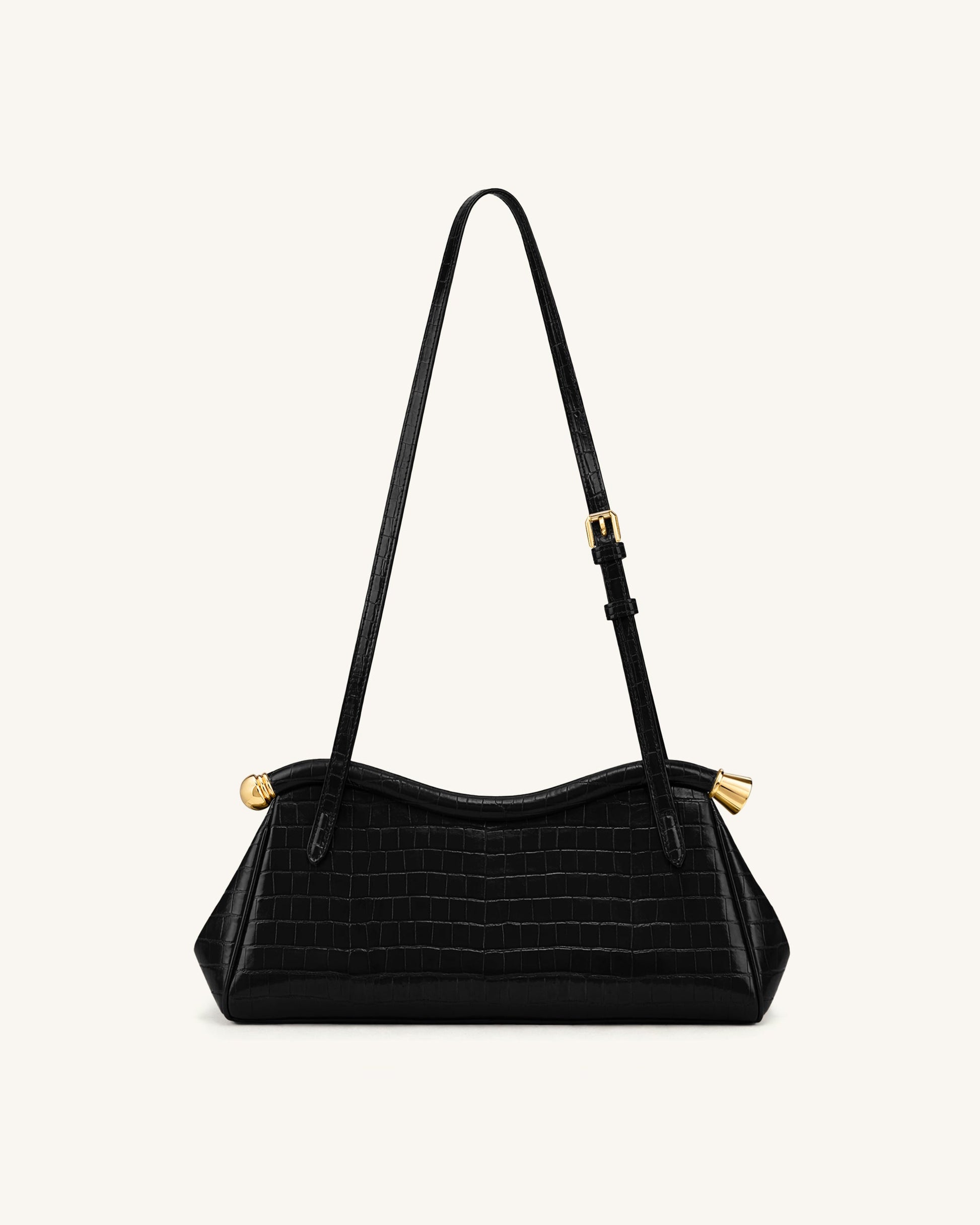 Naomi Sac à Bandoulière Incurvé - Croco Noir