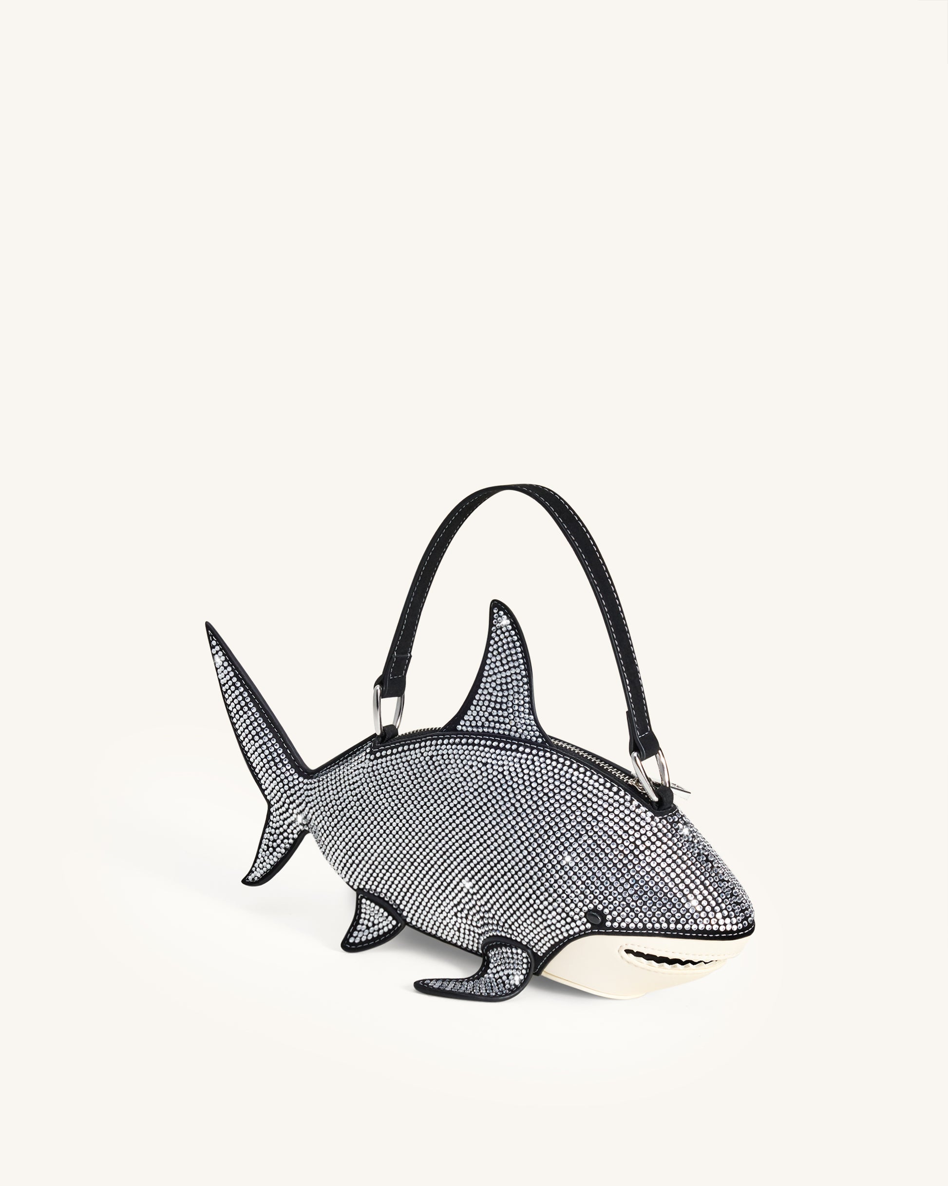 Sac à main Nerys en forme de requin avec cristaux artificiels – Noir
