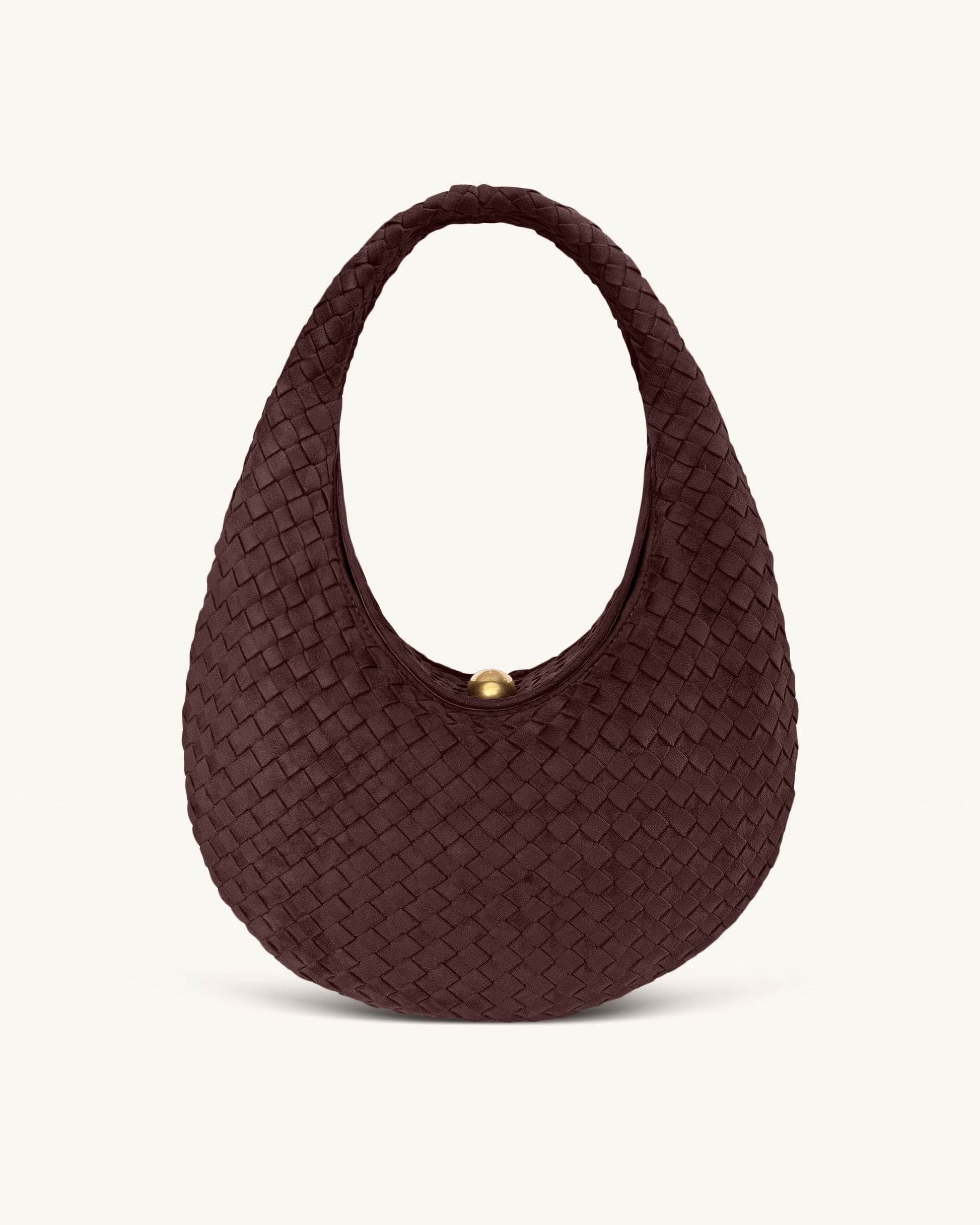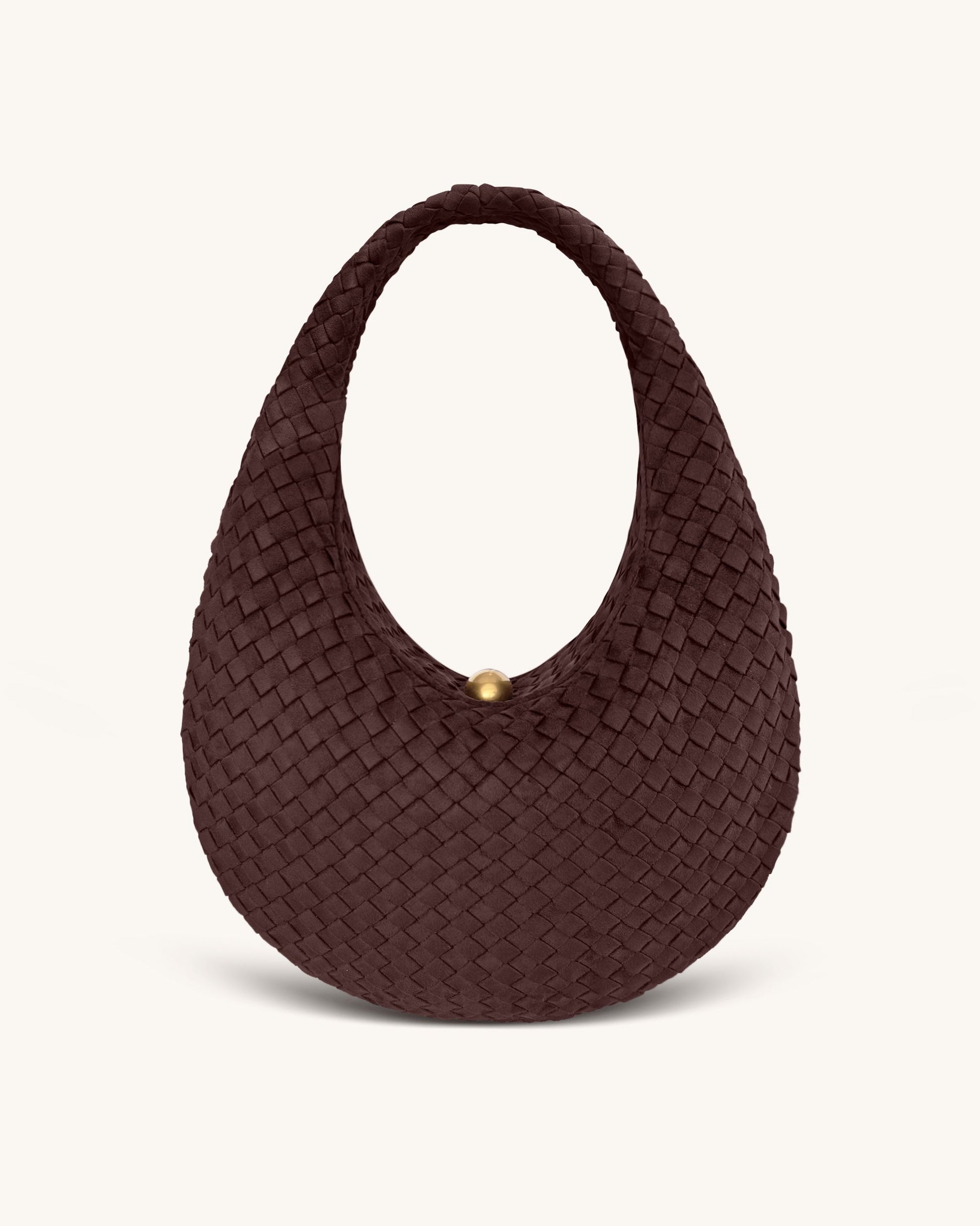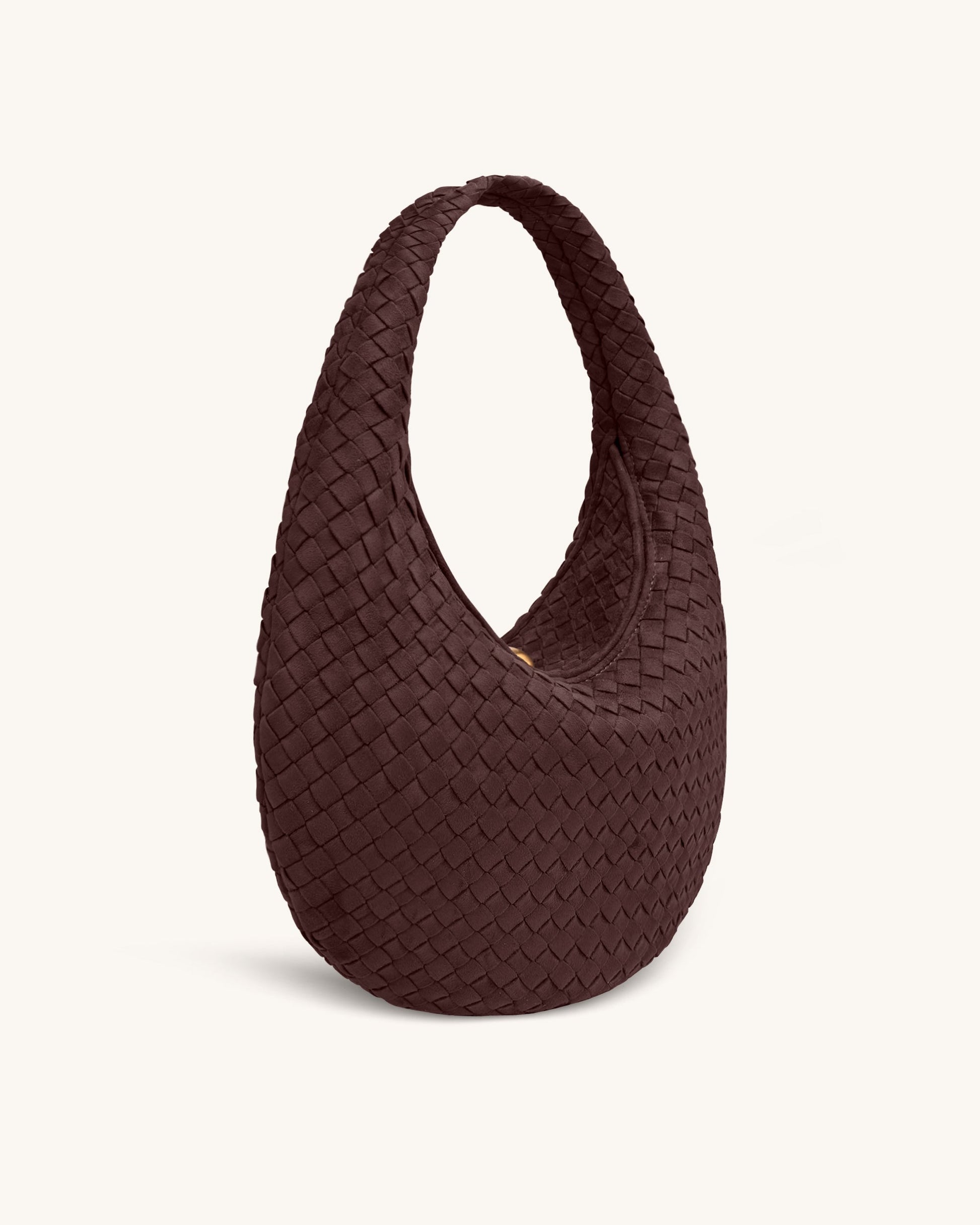 Nola Sac hobo bandoulière tressé en faux daim - Moka foncé