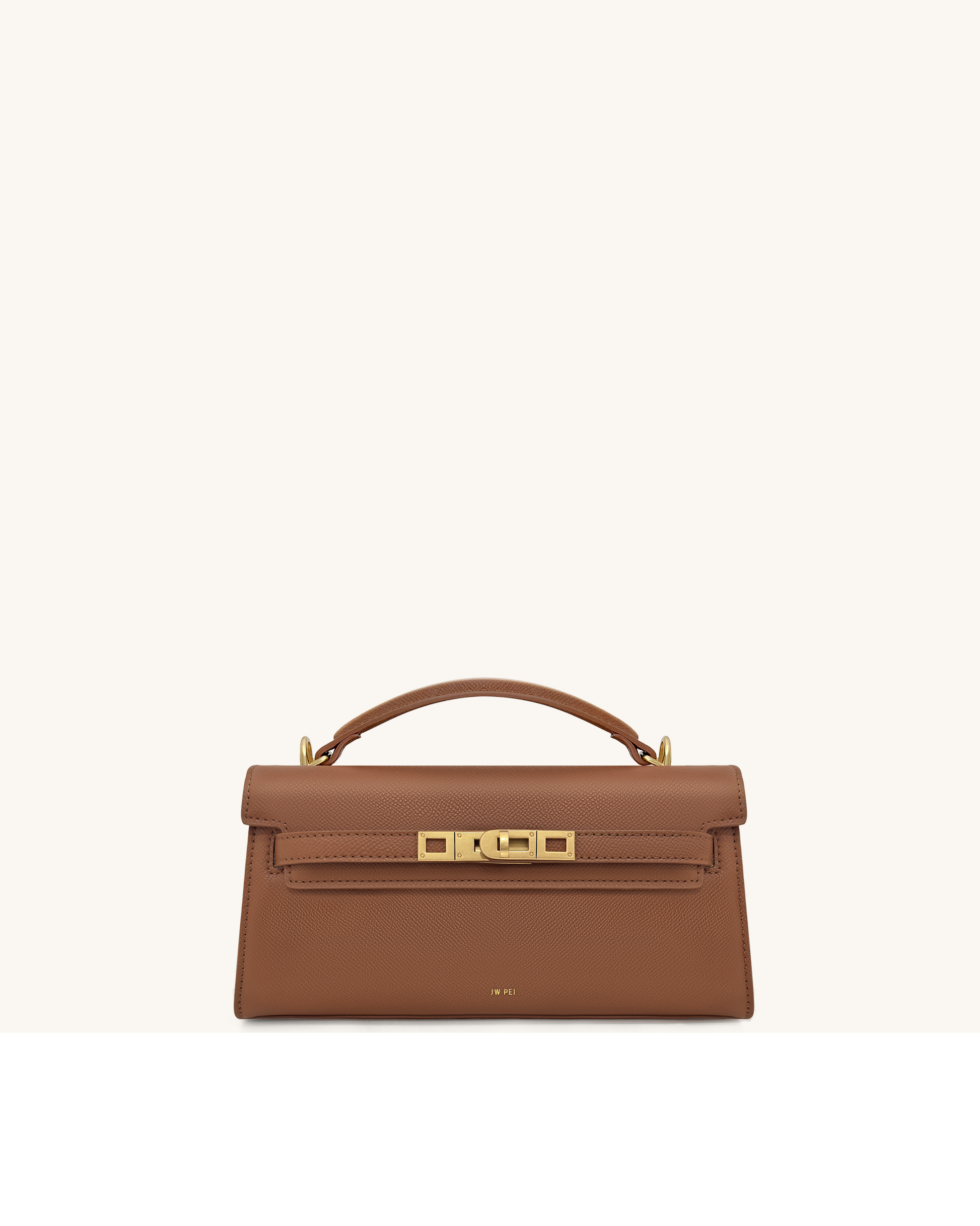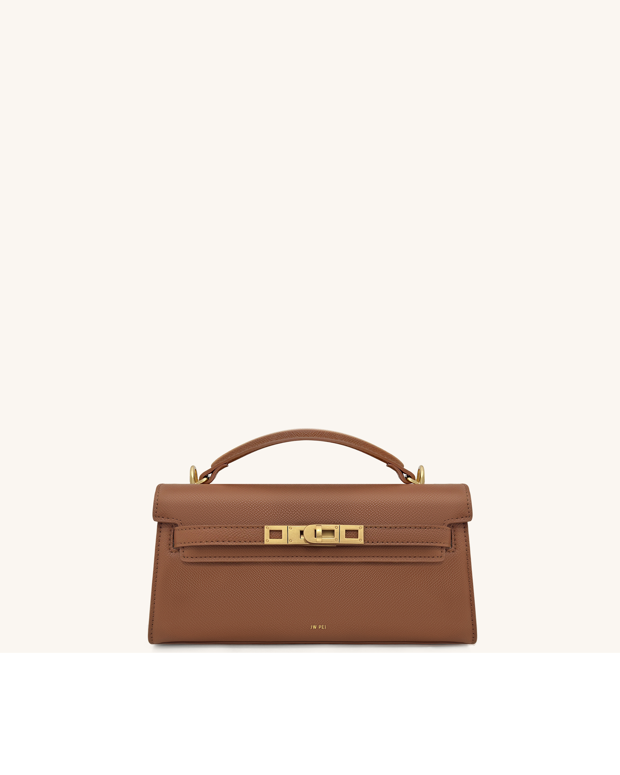 Sac structuré et élégant en cuir végan avec finitions dorées. Assez spacieux pour les essentiels du quotidien et facile à porter. Design distinctif avec une anse supérieure classique. Sophistiqué et polyvalent pour toutes les occasions.