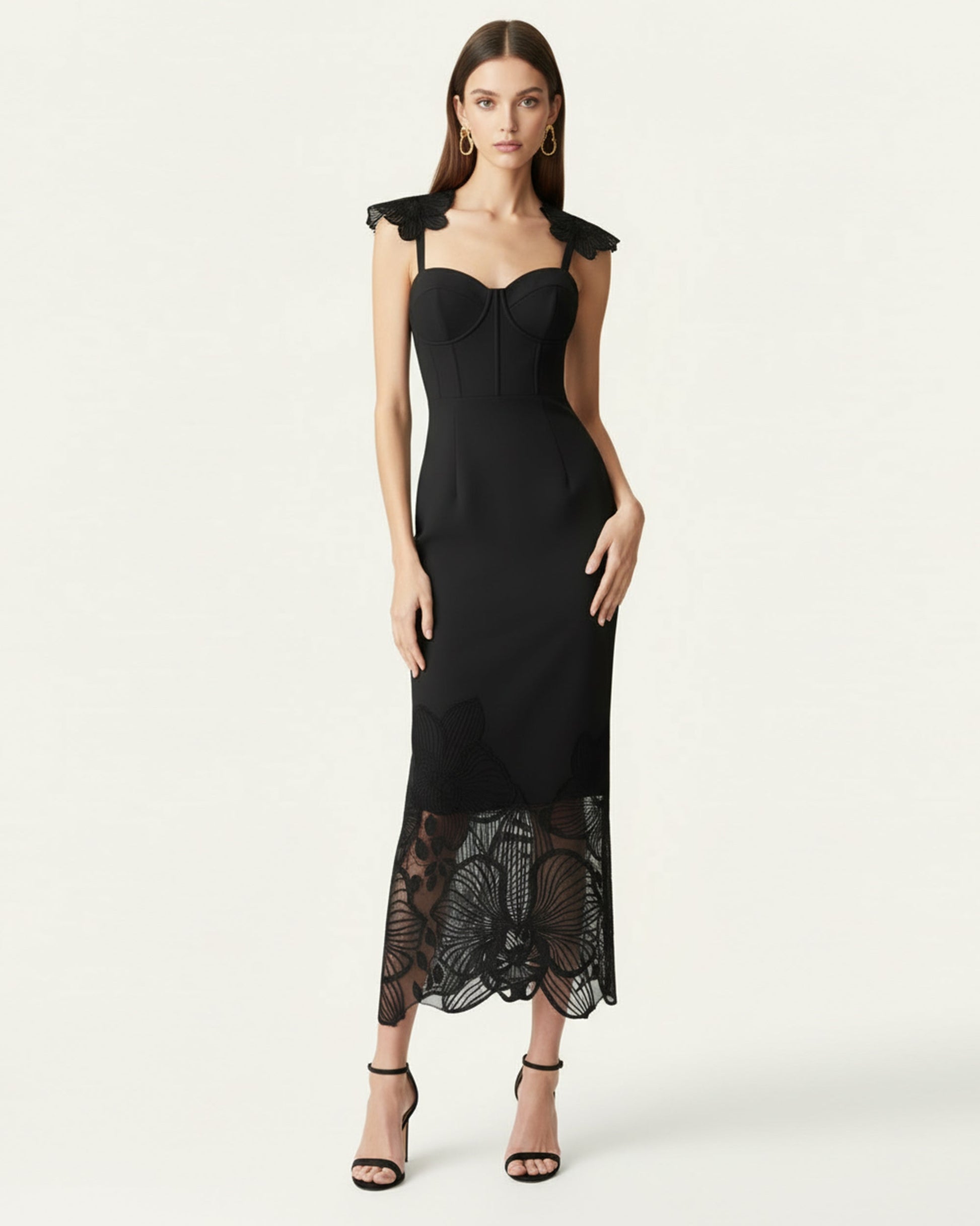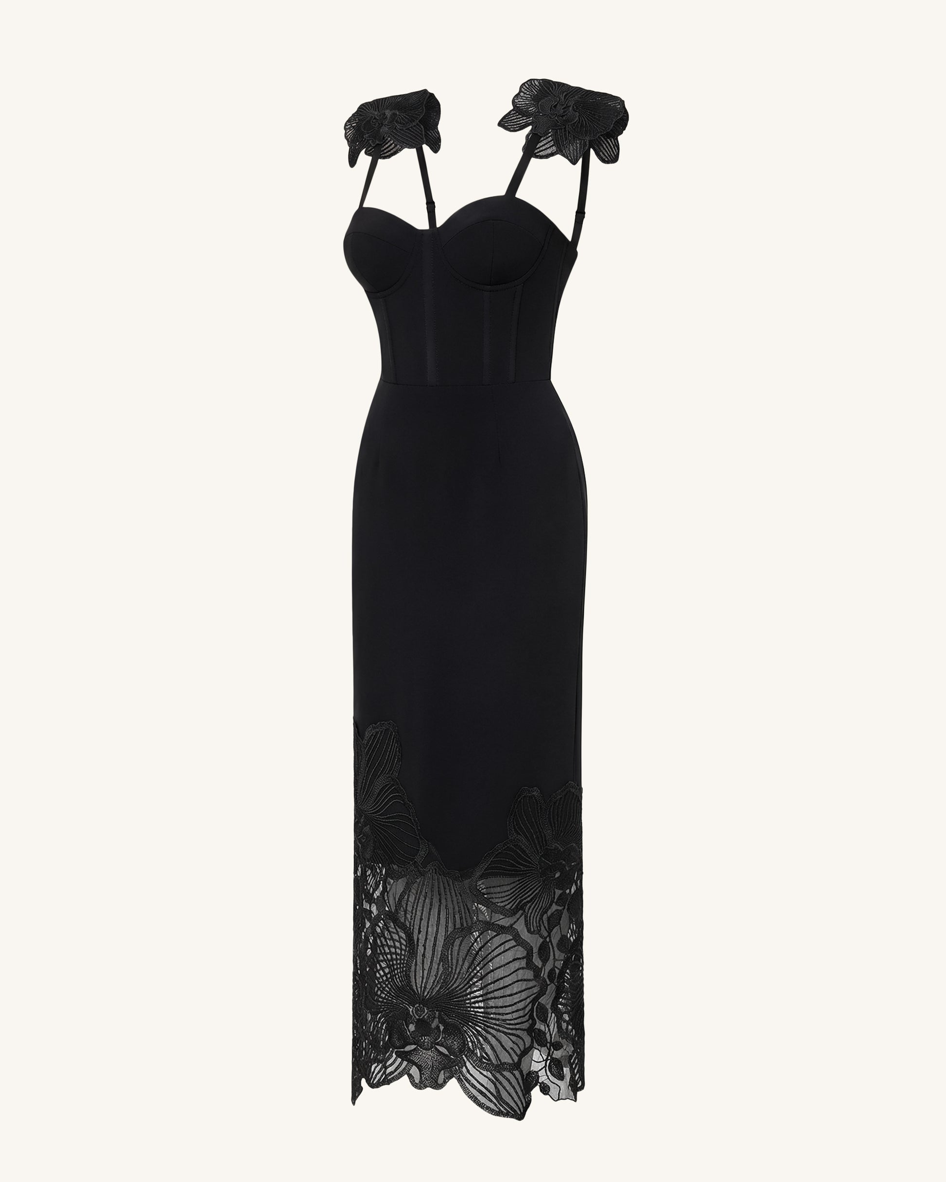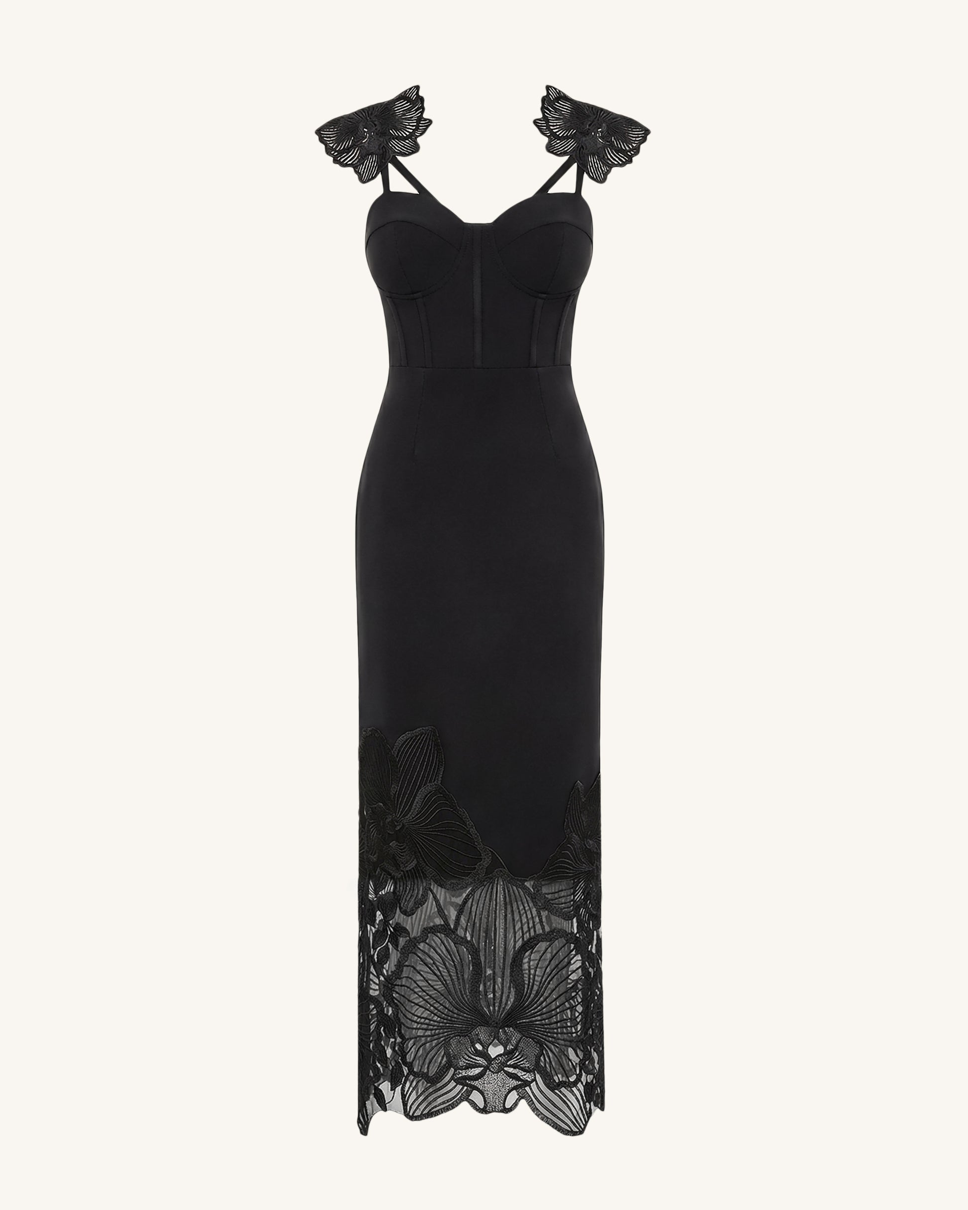 Orchid Robe corset brodée - Noir