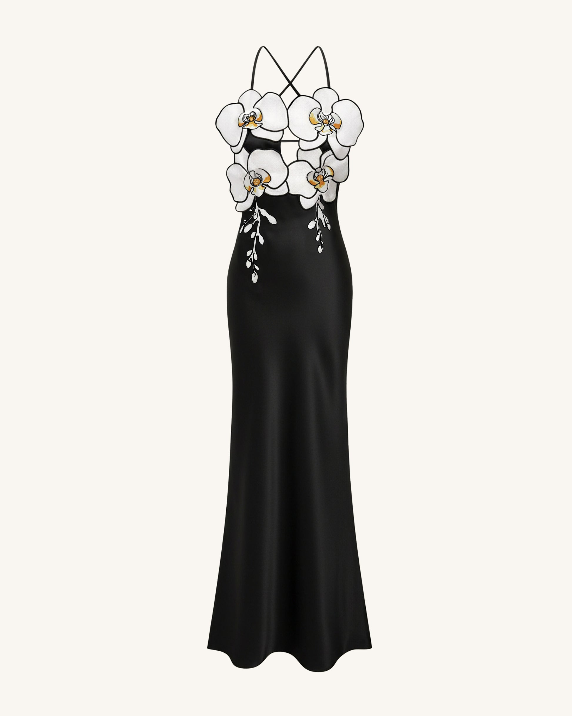 Robe Brodée Orchidée – Noir/Blanc