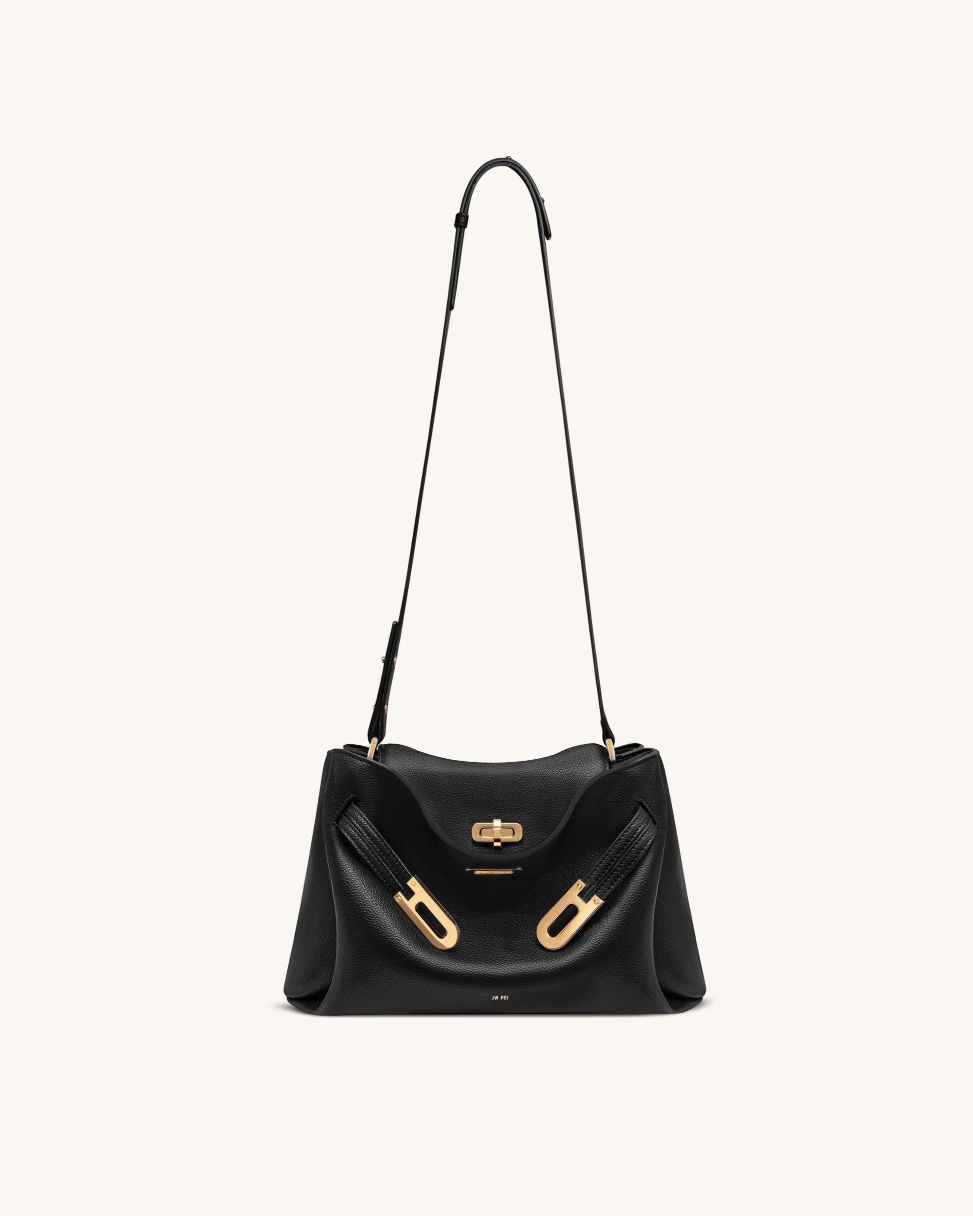 Sac à bandoulière à double boucle texturé Rhea - Noir