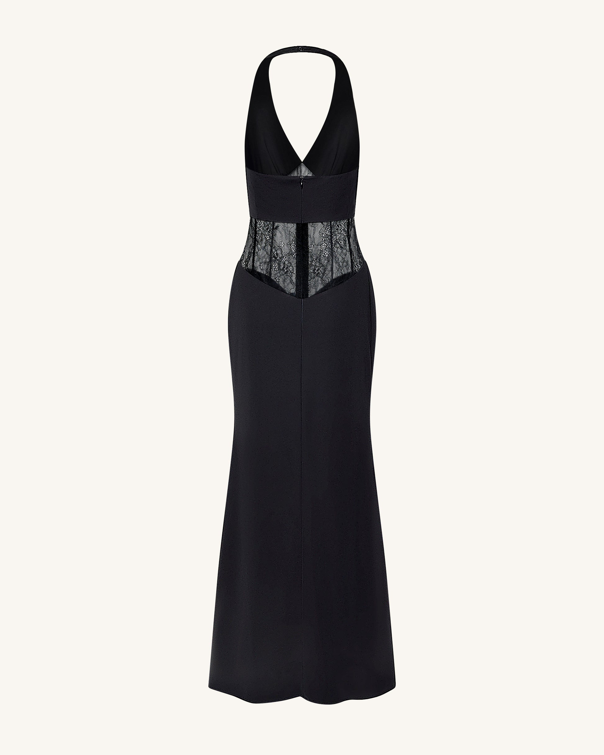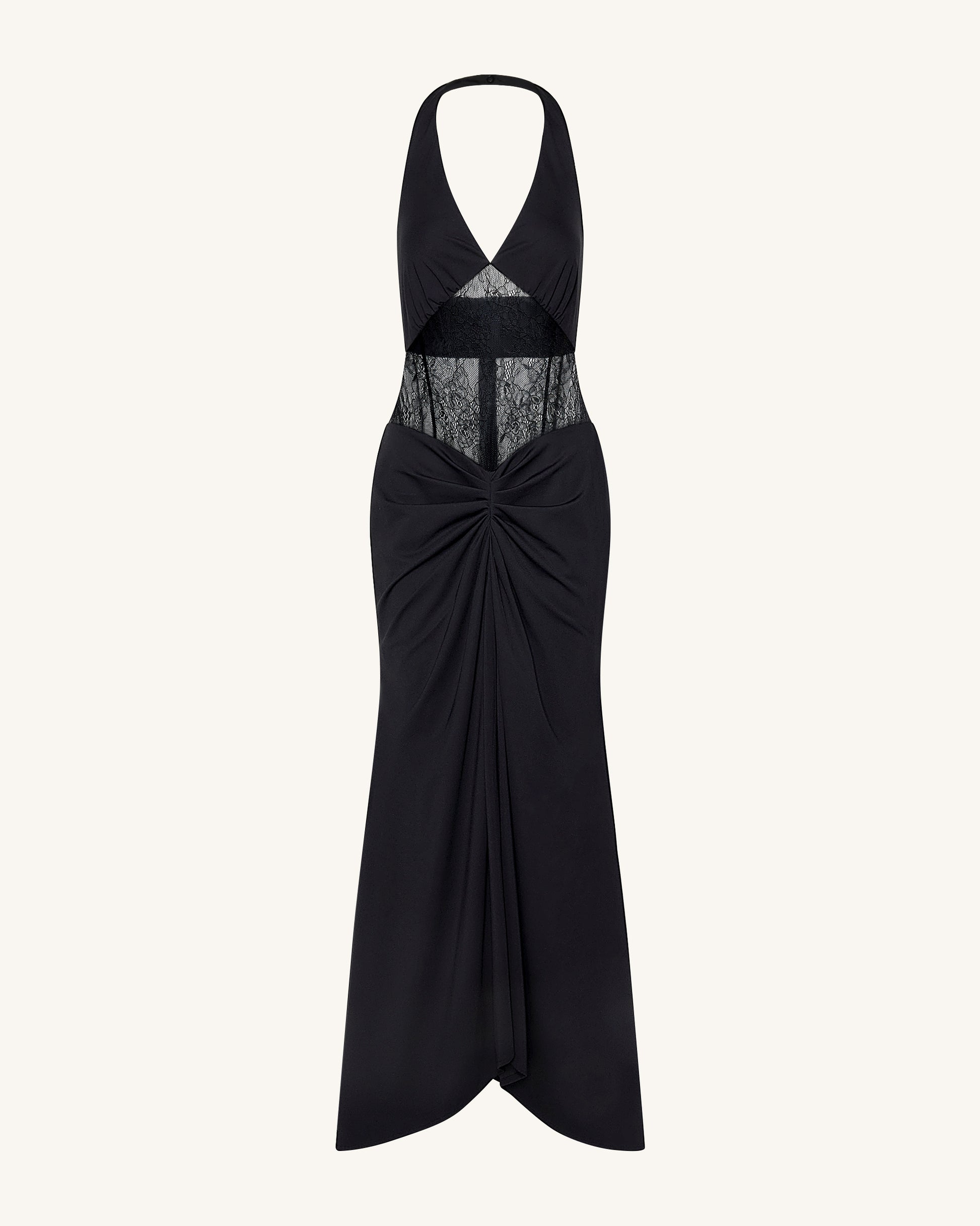 Robe longue froncée à empiècement en dentelle - Noir