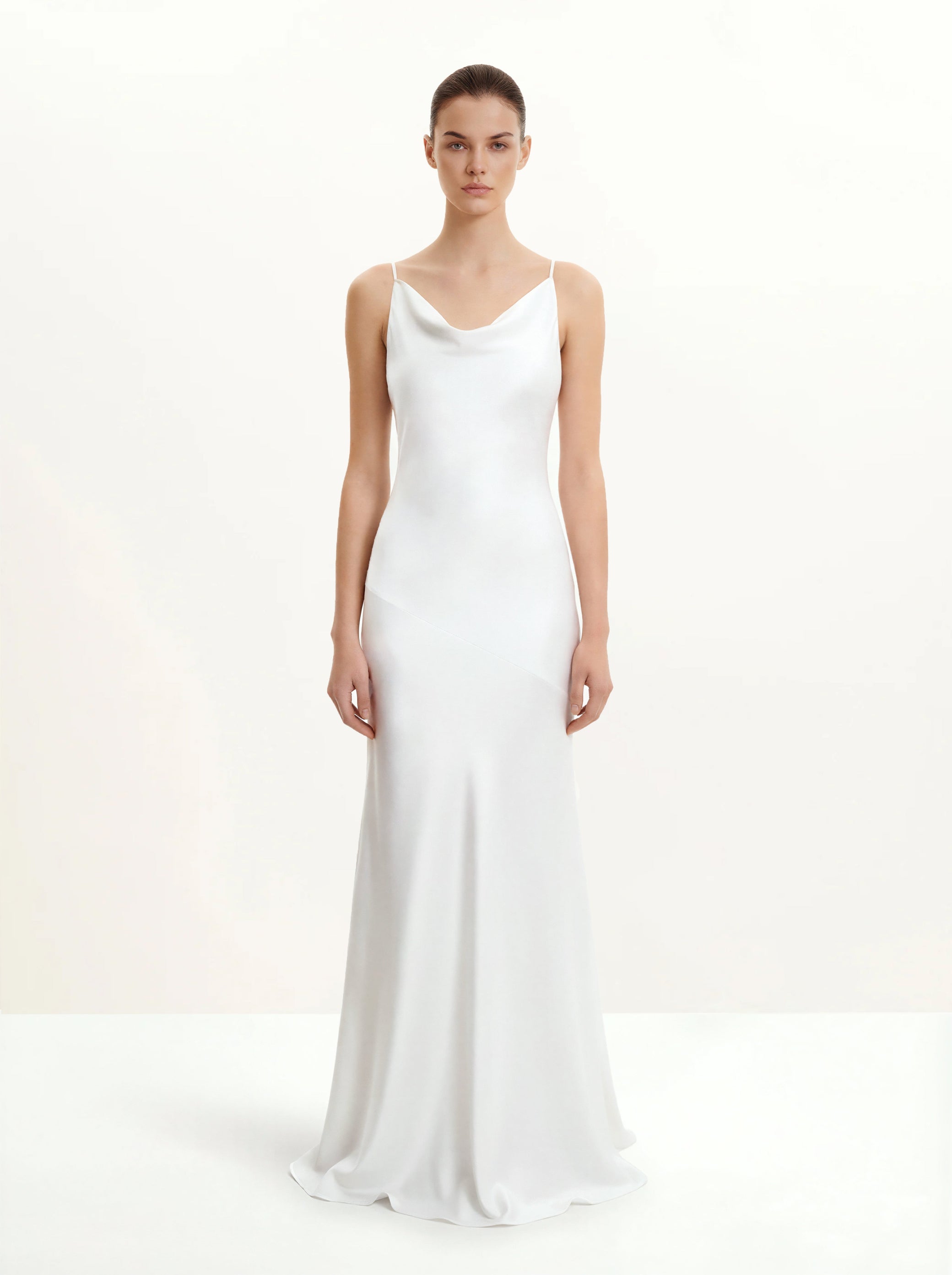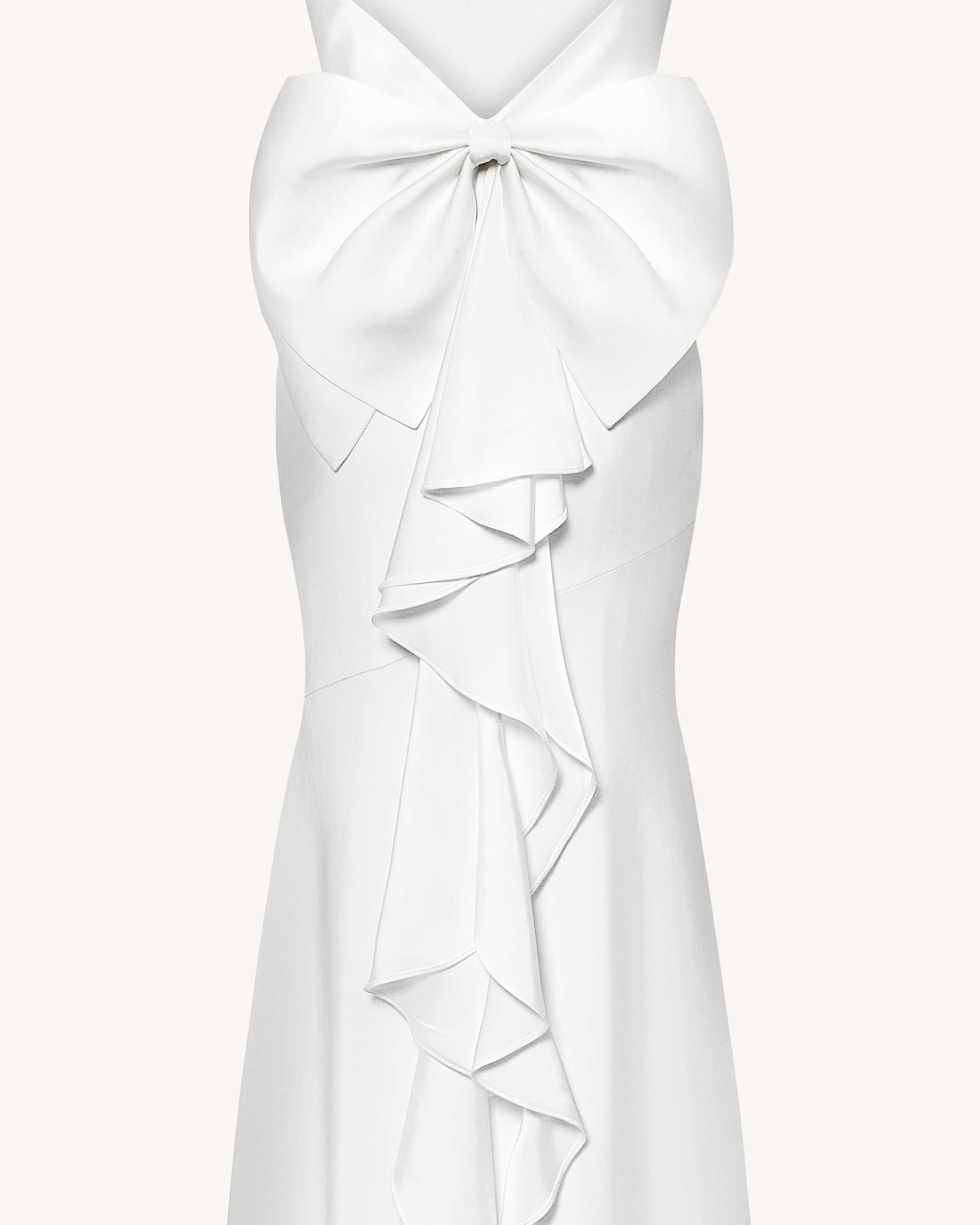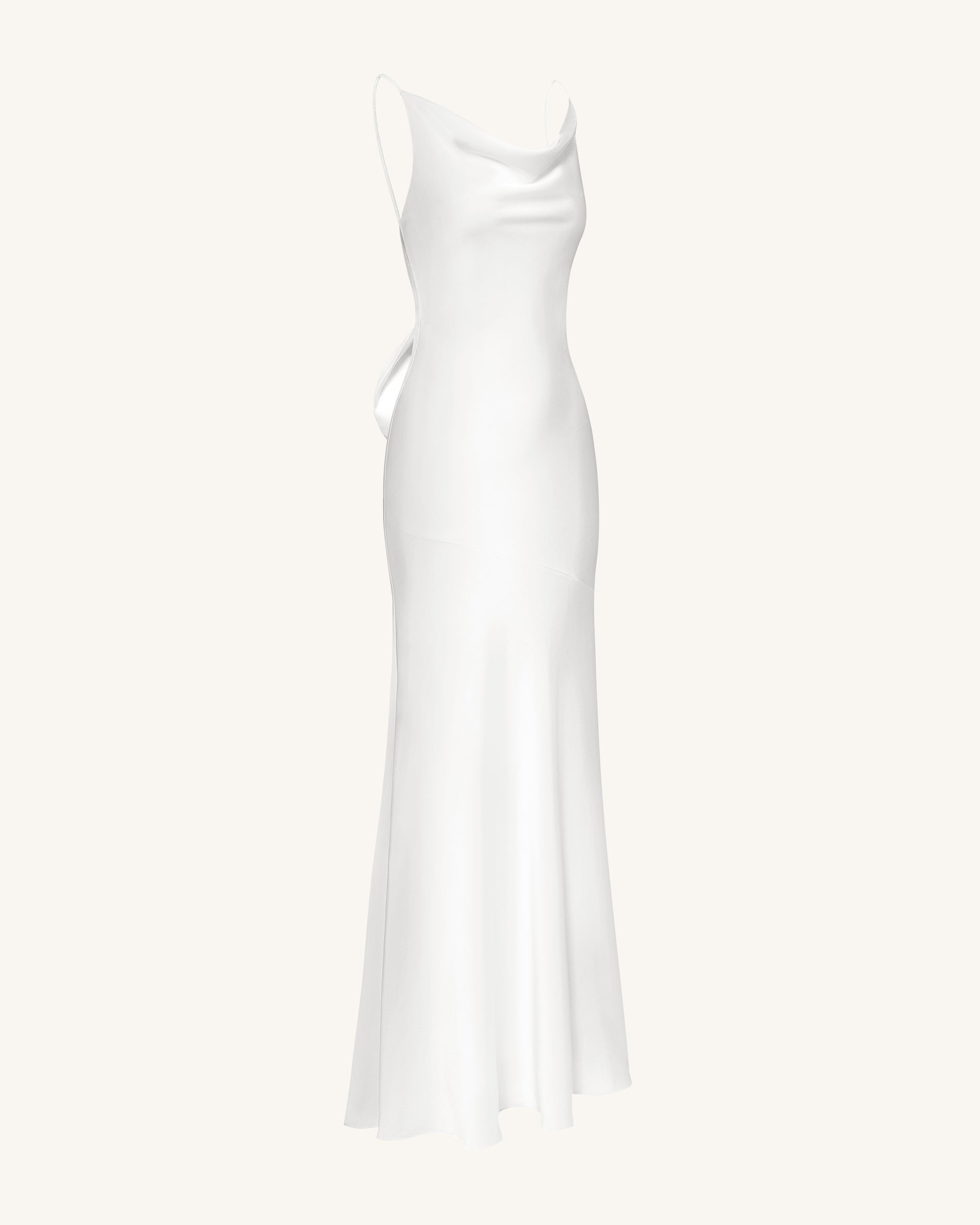 Satin Robe longue à col bénitier et nœud au dos - Blanc
