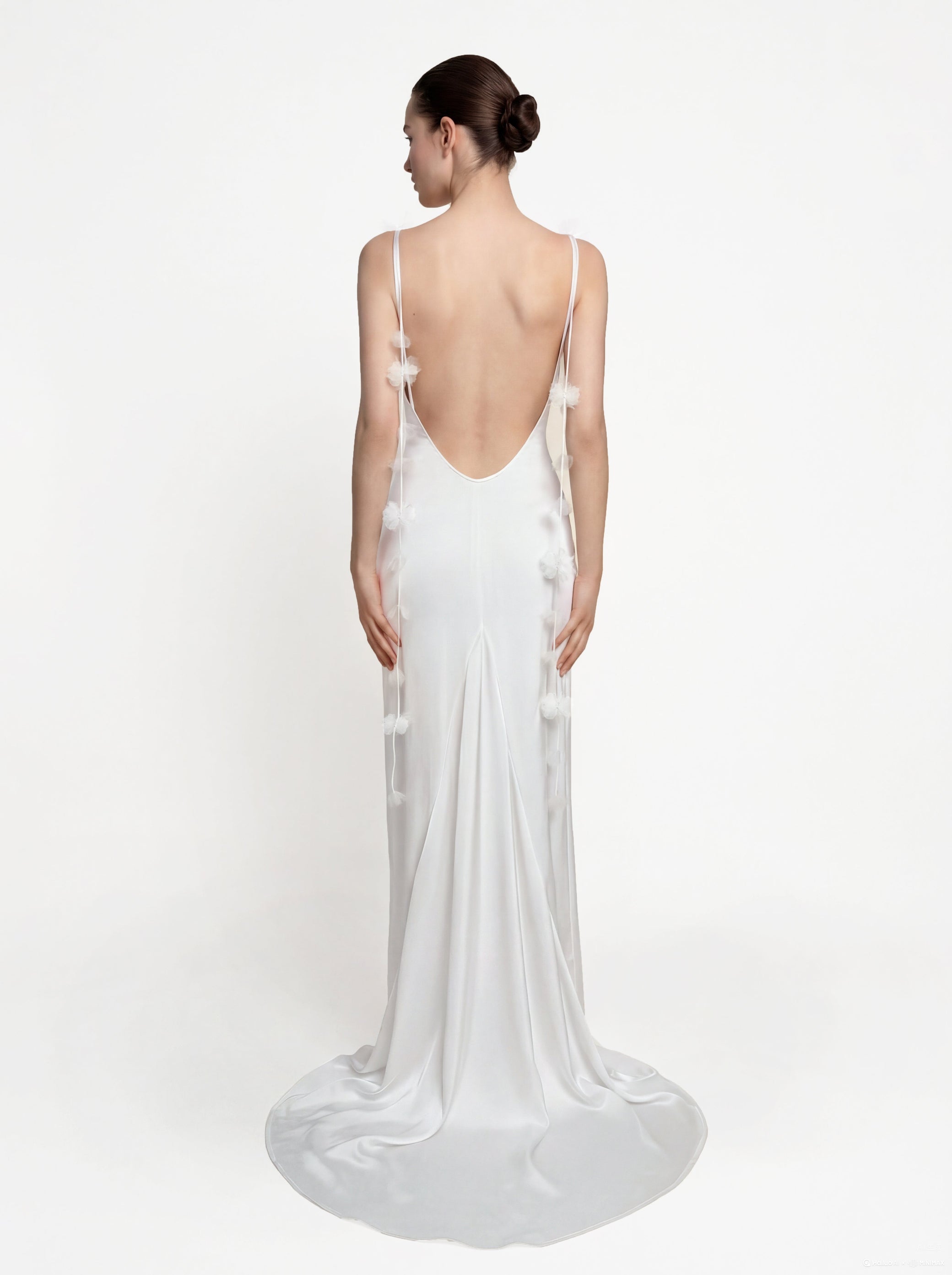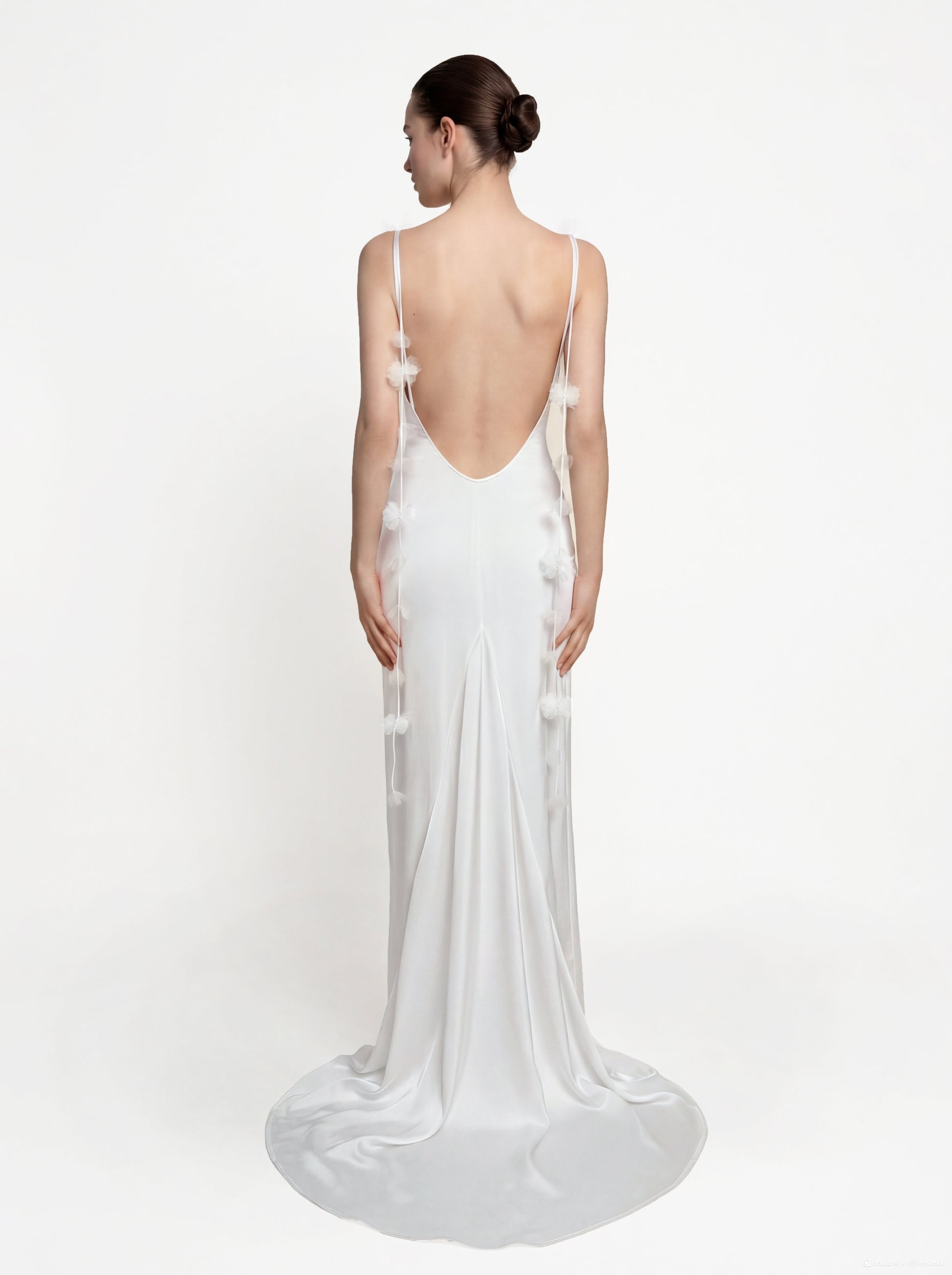 Satin Robe longue à fines bretelles et rubans floraux - Blanc