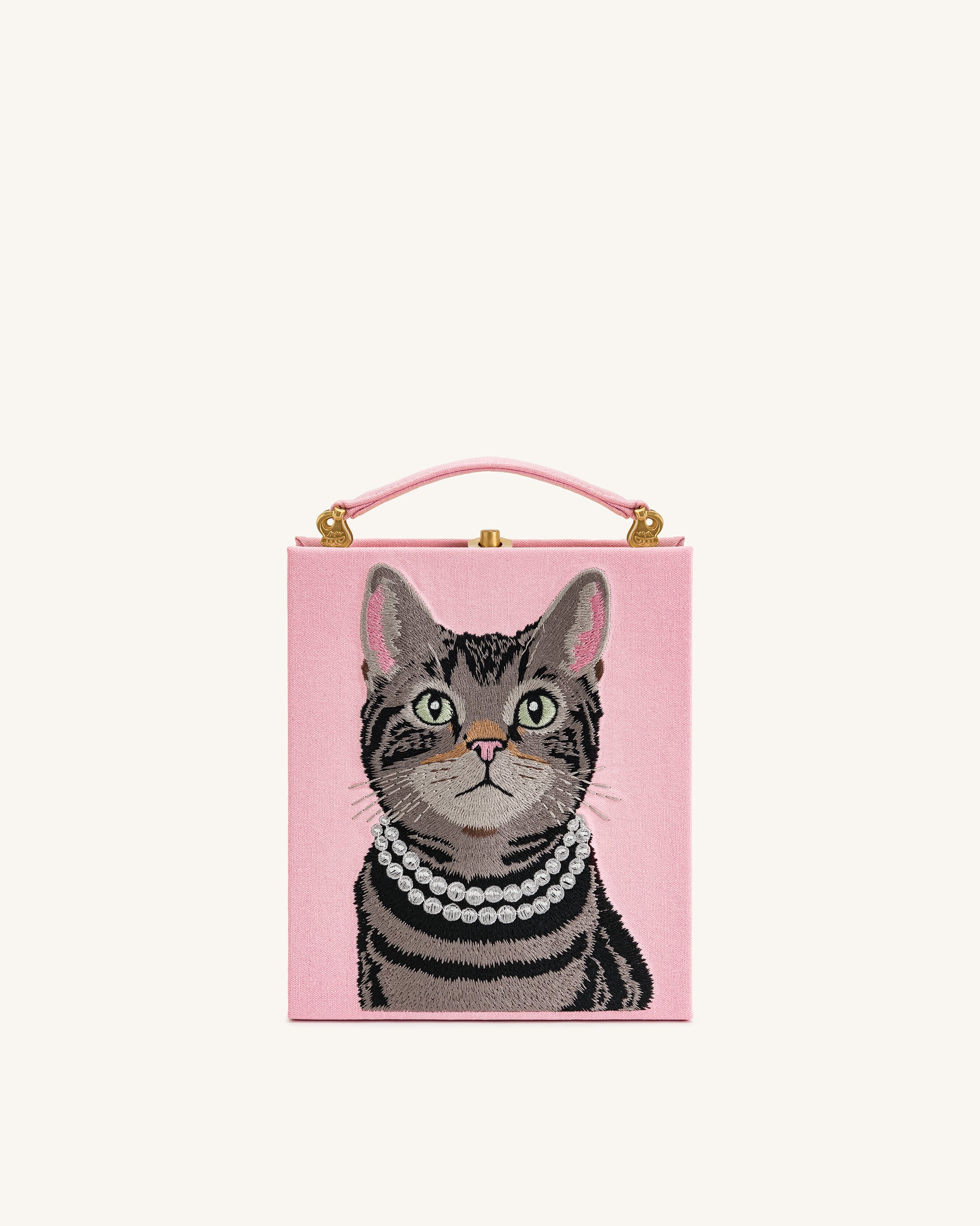 Taya Pochette en forme de livre à motif chat tigré – Rose