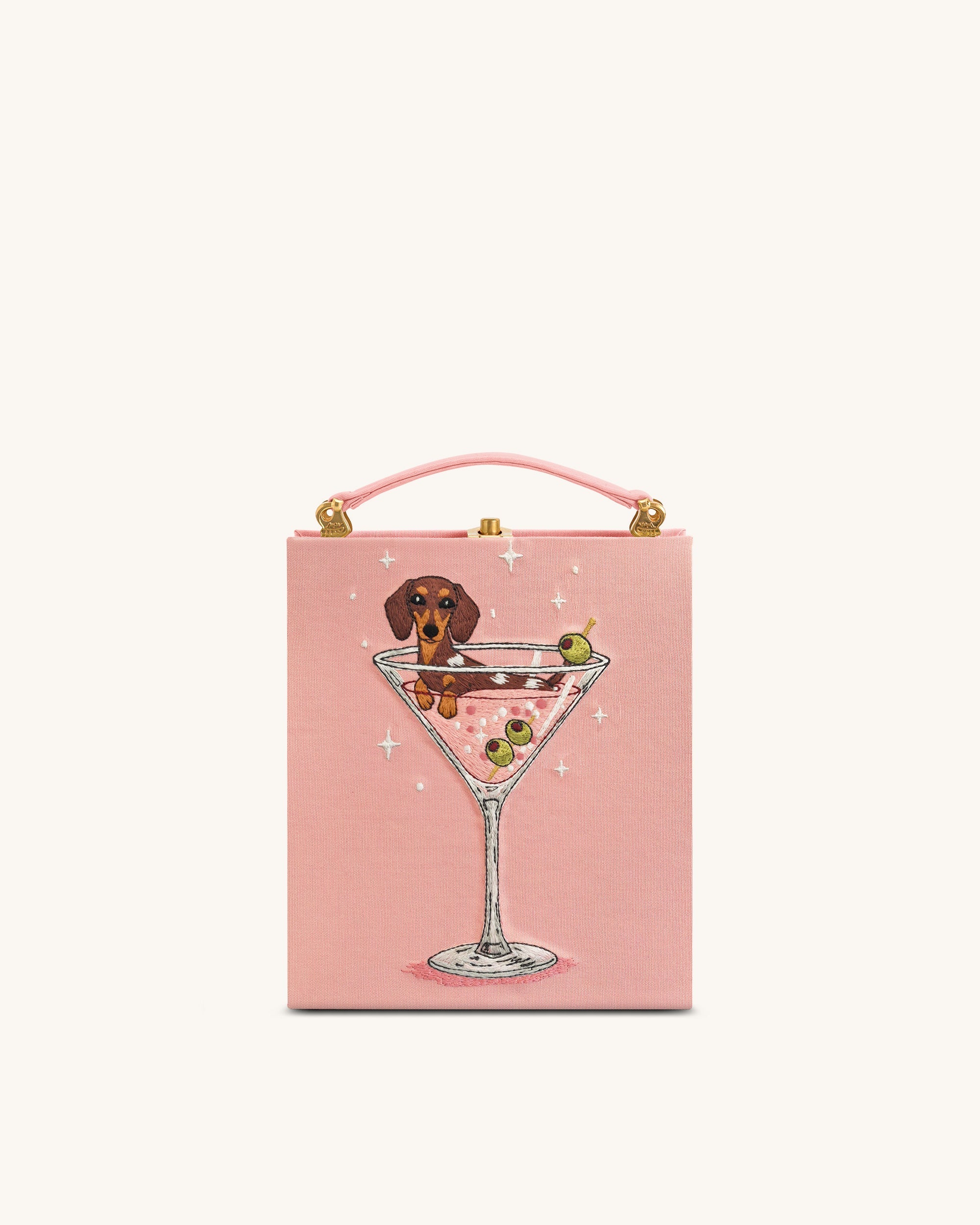 Taya Pochette forme livre à motif chiot et verre de vin - Rose