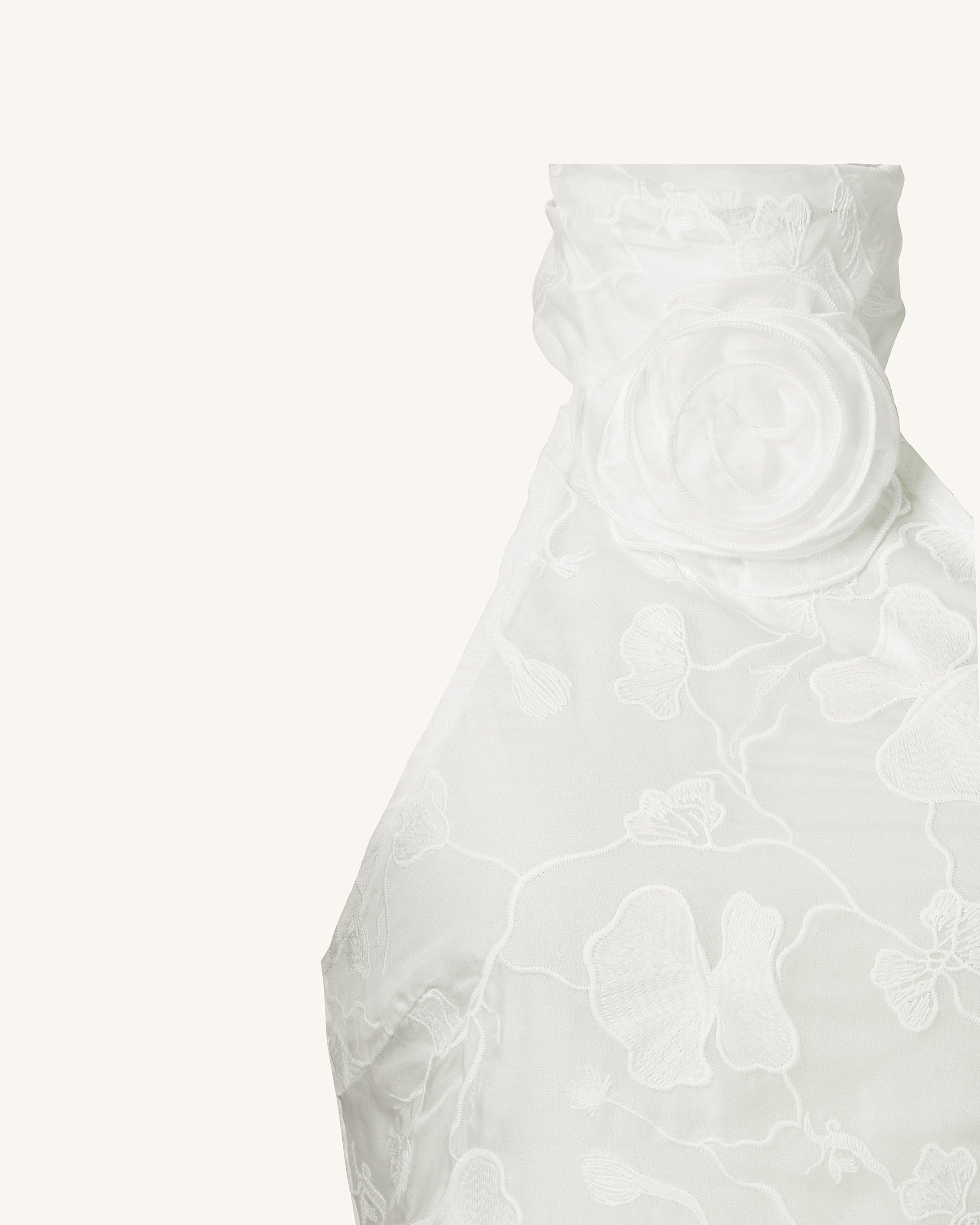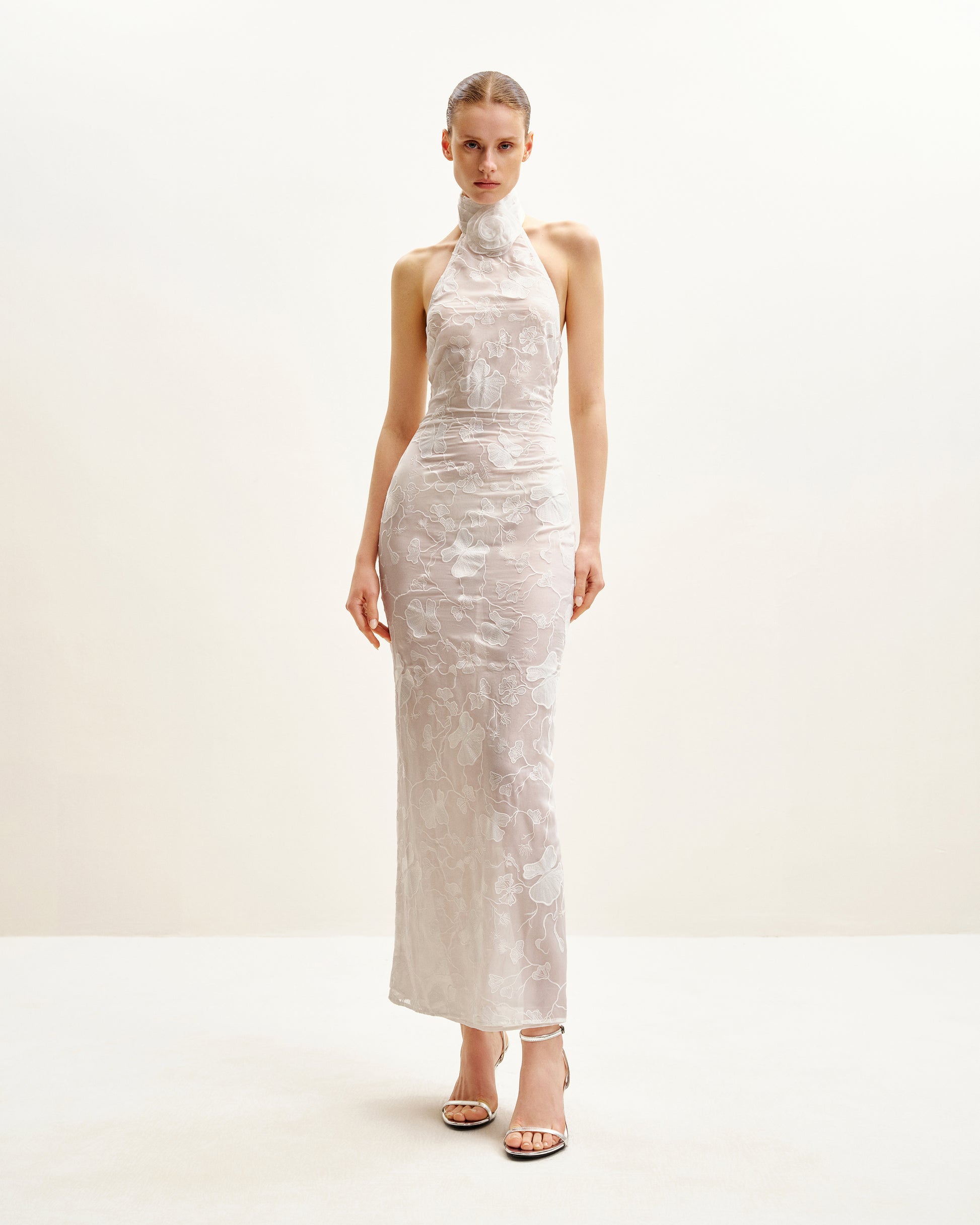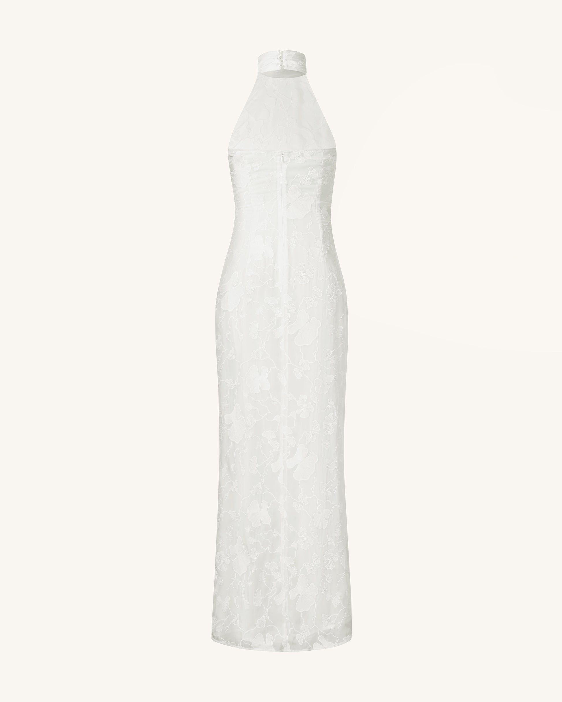 Robe longue blanche à col halter en dentelle florale Uliana - Blanc