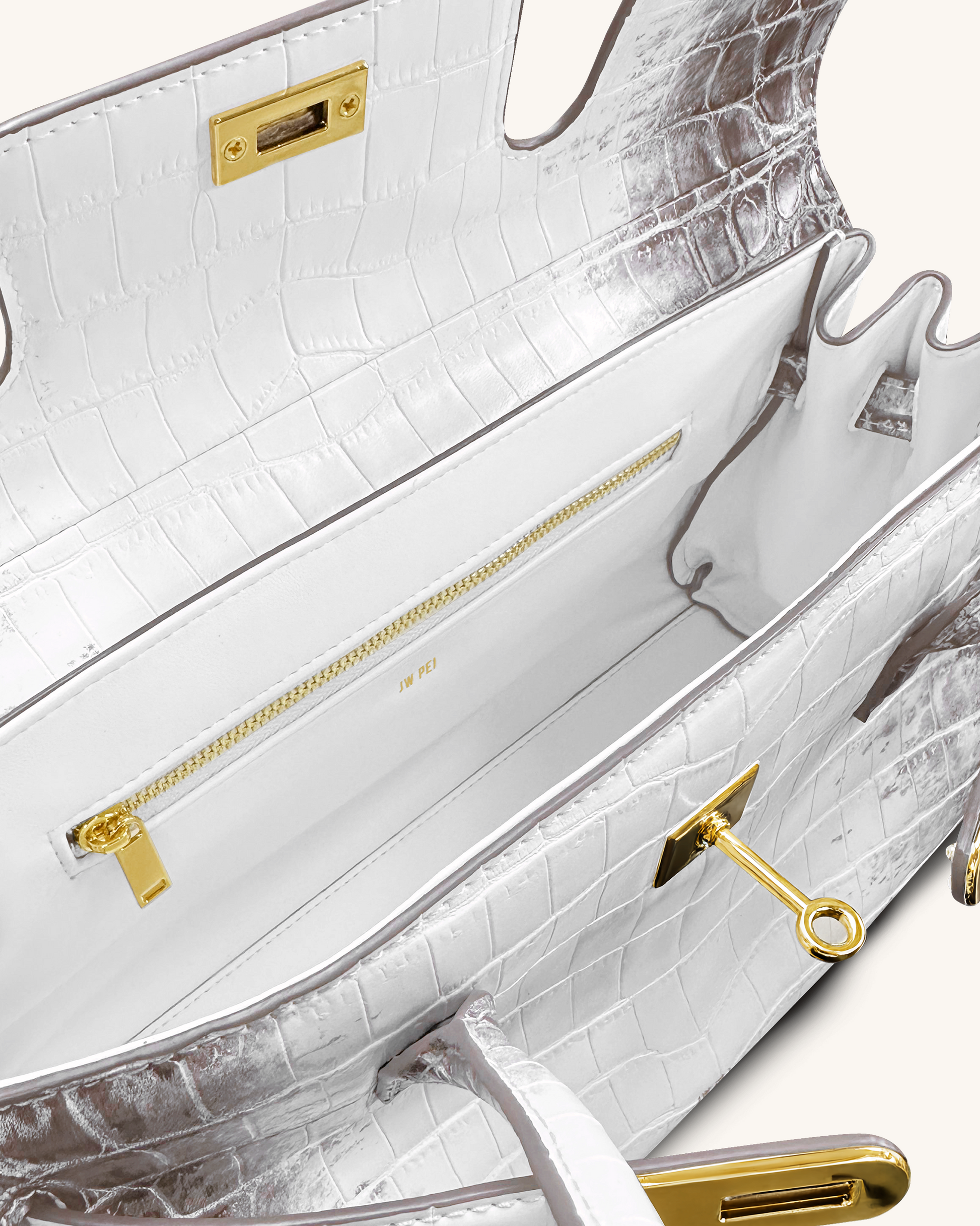 Sac élégant à poignée supérieure avec finition en cuir vegan embossé crocodile luxueuse. Garnitures dorées apportant une touche de sophistication. Assez spacieux pour les essentiels quotidiens.